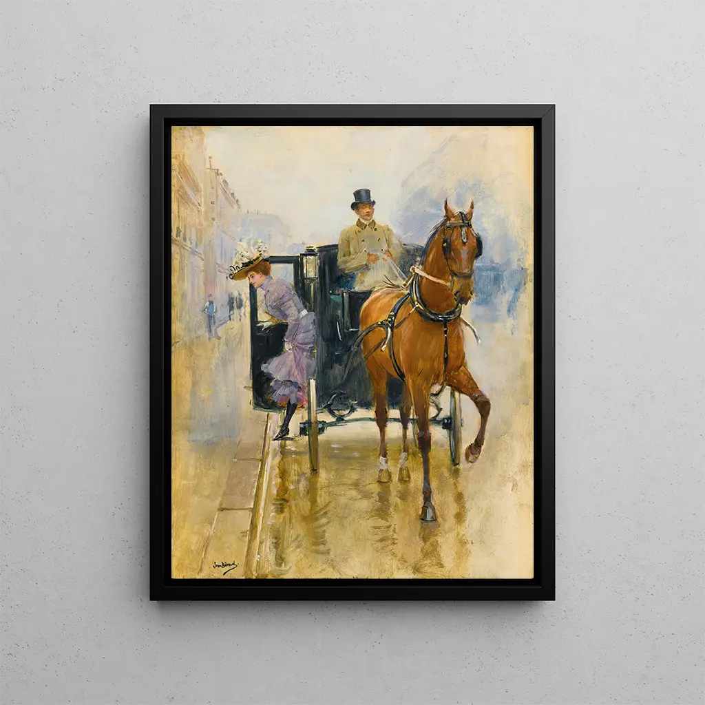 Junge Frau steigt aus einem Fiaker aus - Jean Béraud