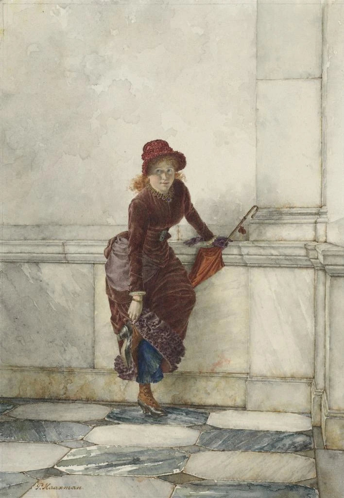 Gemälde Junge Frau stehend an eine Wand gelehnt - Pieter Haaxman | Kunstdruck