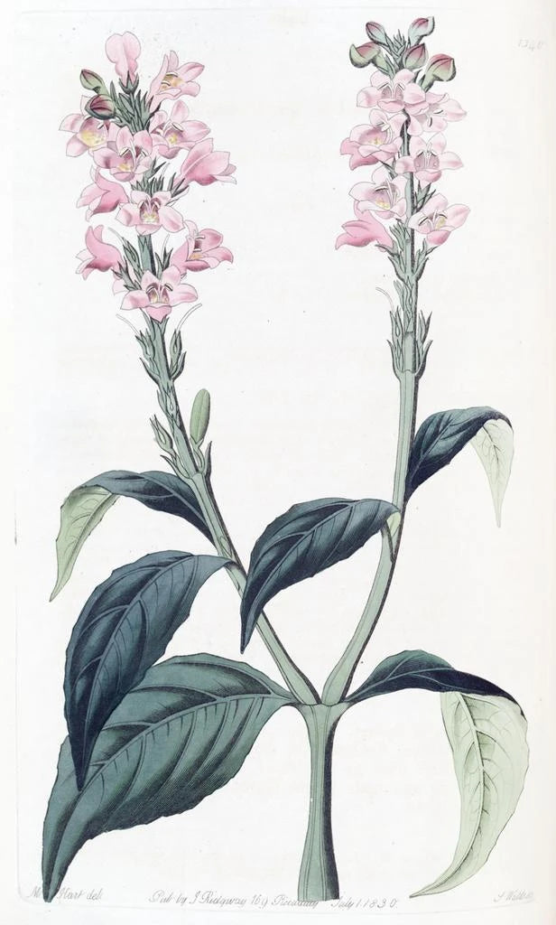 Sydenham Edwards ist eine ikonische Figur der botanischen Illustration des 19. Jahrhunderts. Seine Arbeit, beeinflusst von den wissenschaftlichen Fortschritten seiner Zeit, hat es ermöglicht, Kunst und Botanik auf eine neuartige Weise zu verbinden. Als Illustrator für Fachwerke konnte er das Wesen der Pflanzen mit bemerkenswerter Präzision einfangen. Der kunstdruck der Justicia mit quadratischem Stiel zeigt sein Talent perfekt, wobei jede Blume mit einer Treue dargestellt wird, die sein Engagement für Wissenschaft und Ästhetik bezeugt.