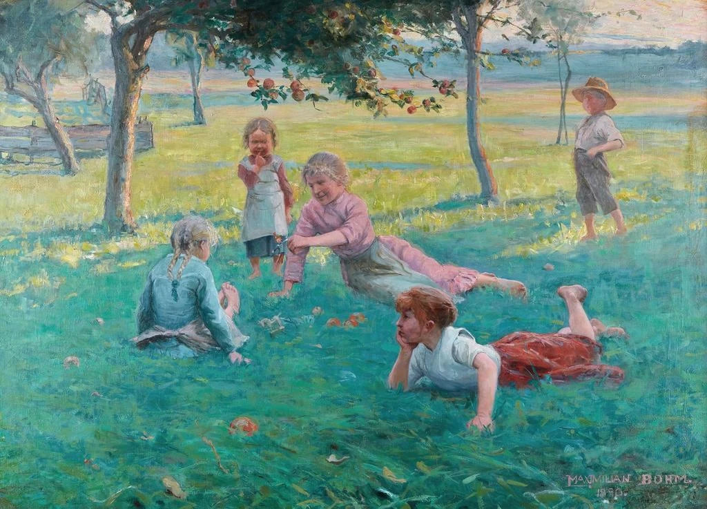 In diesem lebendigen Werk taucht Max Bohm uns in einen friedlichen Moment ein, in dem Kinder im Gras liegen und die Sanftheit der Natur genießen. Die leuchtenden Farben des Kunstdrucks, die von üppigem Grün bis zu goldenen Sonnenakzenten reichen, schaffen eine Atmosphäre von Freude und Ruhe. Die impressionistische Technik Bohms, mit ihren fließenden Pinselstrichen und dem strahlenden Licht, vermittelt ein Gefühl von Bewegung und Lebendigkeit. Jedes Detail, von den Lachern der Kinder bis zu den Schatten, die die Bäume werfen, trägt zu einer Szene voller Glück und Unschuld bei und lädt den Betrachter ein, in diese idyllische Welt einzutauchen.