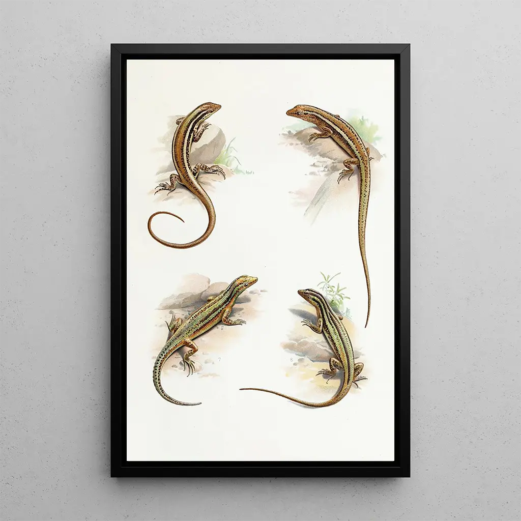 Cryptoblepharus : ein Blick auf die reptilische Schönheit In dieser kunstdruckversion von Cryptoblepharus fängt der Künstler Thomas Barbour die faszinierende Essenz dieses Reptils ein. Die detaillierten Feinheiten der Haut, mit ihren zart wiedergegebenen Schuppen, schaffen eine fast lebendige Atmosphäre. Die Nuancen von Grün und Braun verschmelzen harmonisch und erinnern an die natürlichen Lebensräume des Tieres. Das Licht spielt auf den Oberflächen, hebt die Textur und die Tiefe des Werks hervor. Barbour gelingt es, ein Gefühl von Ruhe und Neugier zu vermitteln und den Betrachter einzuladen, die oft vernachlässigte Schönheit der reptilischen Kreaturen zu bewundern. Thomas Barbour : ein Pionier der zoologischen Illustration Thomas Barbour, Naturforscher und Illustrator des 20. Jahrhunderts, widmete sein Leben der Erforschung und Darstellung von Tierarten. Seine Arbeit befindet sich an der Schnittstelle von Kunst und Wissenschaft, wo er wissenschaftliche Präzision und Ästhetik vereinte. Beeinflusst von den naturkundlichen Expeditionen seiner Zeit, trug Barbour zur Dokumentation zahlreicher Arten bei, von denen einige heute bedroht sind. Seine Werke, wie dieser kunstdruck von Cryptoblepharus, zeugen von der Bedeutung der Biodiversität und der Notwendigkeit, sie zu bewahren. Sein einzigartiger Stil, der Realismus und Empfindsamkeit verbindet, prägte die zoologische Illustration. Eine dekorative Anschaffung mit vielfältigen Vorzügen Der kunstdruck von Cryptoblepharus ist ein dekoratives Stück, das sich perfekt in verschiedene Räume integriert, sei es ein Wohnzimmer, ein Büro oder ein Schlafzimmer. Seine Druckqualität und die Treue zu den Originaldetails machen ihn zur idealen Wahl für Natur- und Kunstliebhaber. Dieses Bild verleiht Eleganz und Neugier, regt Gespräche über die Schönheit der Tierwelt an. Mit der Wahl dieses Leinwandbildes entscheiden Sie sich für ein Werk, das Ihre Dekoration bereichert und gleichzeitig die Vielfalt der Fauna feiert.