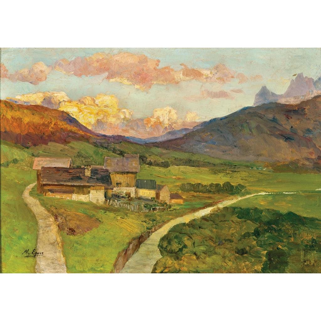 In diesem Werk stellt Egner eine Berglandschaft in der Dämmerung dar, in der Schatten und Licht auf poetische Weise aufeinandertreffen. Dieses Werk ruft einen Moment der Ruhe und Kontemplation hervor und ermöglicht es dem Betrachter, sich mit der natürlichen Schönheit zu verbinden. Bei seiner Veröffentlichung löste es ein wachsendes Interesse am Symbolismus aus und bewies, dass Kunst über das bloß Visuelle hinausgehen kann, um die Seele zu berühren.