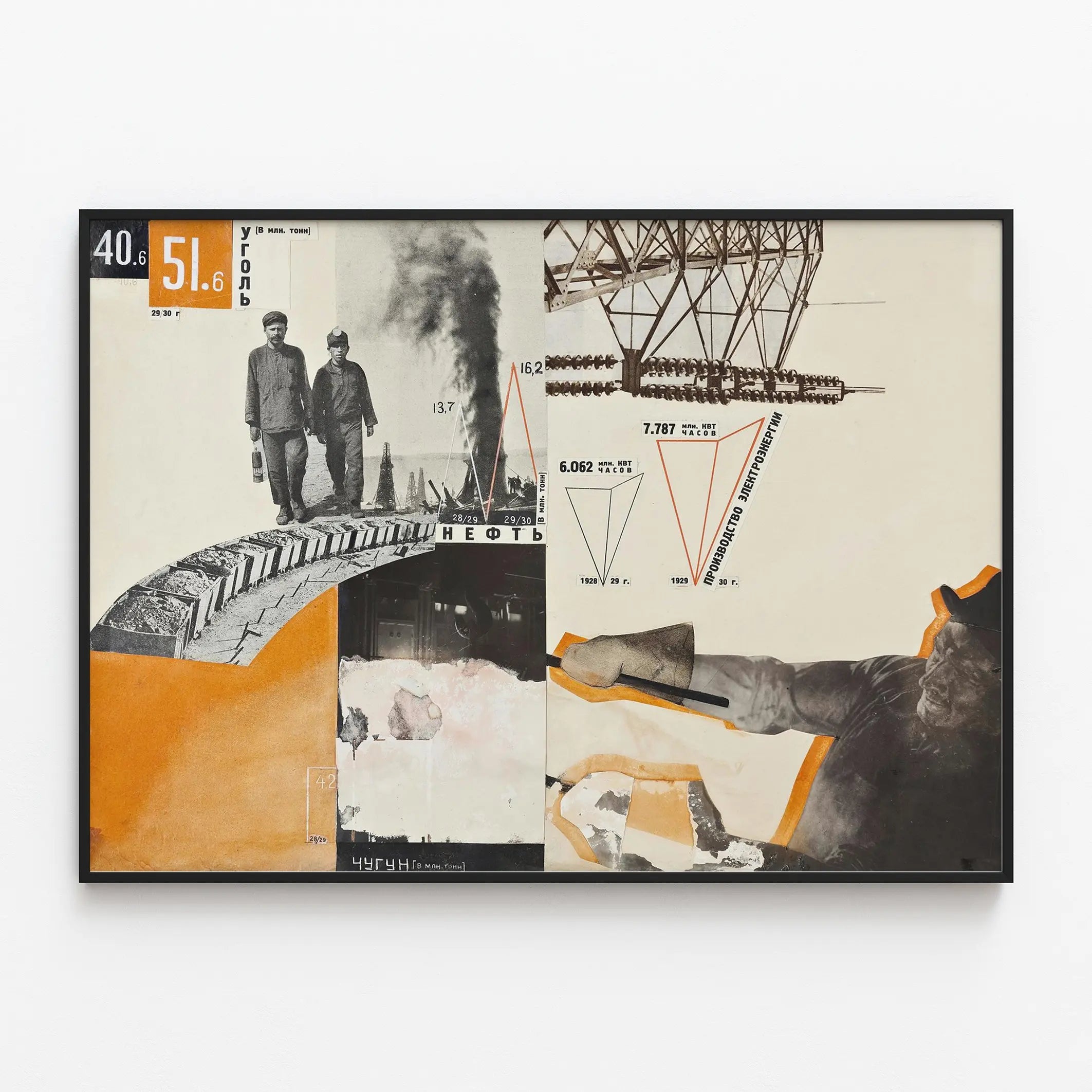 Entdecken Sie ein einzigartiges Poster, das industrielle Bilder und grafische Elemente kunstvoll verbindet – perfekt für eine mutige und originelle Wanddekoration. Diese Wandgestaltung zeigt eine feine Zusammenstellung schwarz-weißer Fotografien, kombiniert mit leuchtend orangefarbenen Flächen, die einen starken, dynamischen Kontrast erzeugen und sofort ins Auge fallen. Das Poster enthält Darstellungen von Arbeitern, Industrieanlagen und Datenvisualisierungen, die eine retro- und industriell anmutende Atmosphäre in Wohn- oder Arbeitsräumen schaffen. Mit seinen grafischen Linien und warmen Farbtönen passt dieses Wandbild in einen Vintage-Trend, der die industrielle und technische Geschichte widerspiegelt. Dieses Poster ist besonders geeignet für Liebhaber grafischen Designs sowie für jene, die ihrer Inneneinrichtung eine Note von Authentizität und Charakter verleihen möchten. Ob im Wohnzimmer, Büro oder Schlafzimmer platziert, kann dieses Modell auch als inspirierender Blickfang dienen. Jedes Detail, von menschlichen Figuren bis zu technischen Elementen, trägt zu einer kraftvollen und ausdrucksstarken Wanddekoration bei. Sein moderner Collage-Stil macht dieses Poster zur idealen Wahl für zeitgenössische, industrielle und minimalistische Räume, die eine markante und charaktervolle Wandgestaltung suchen.