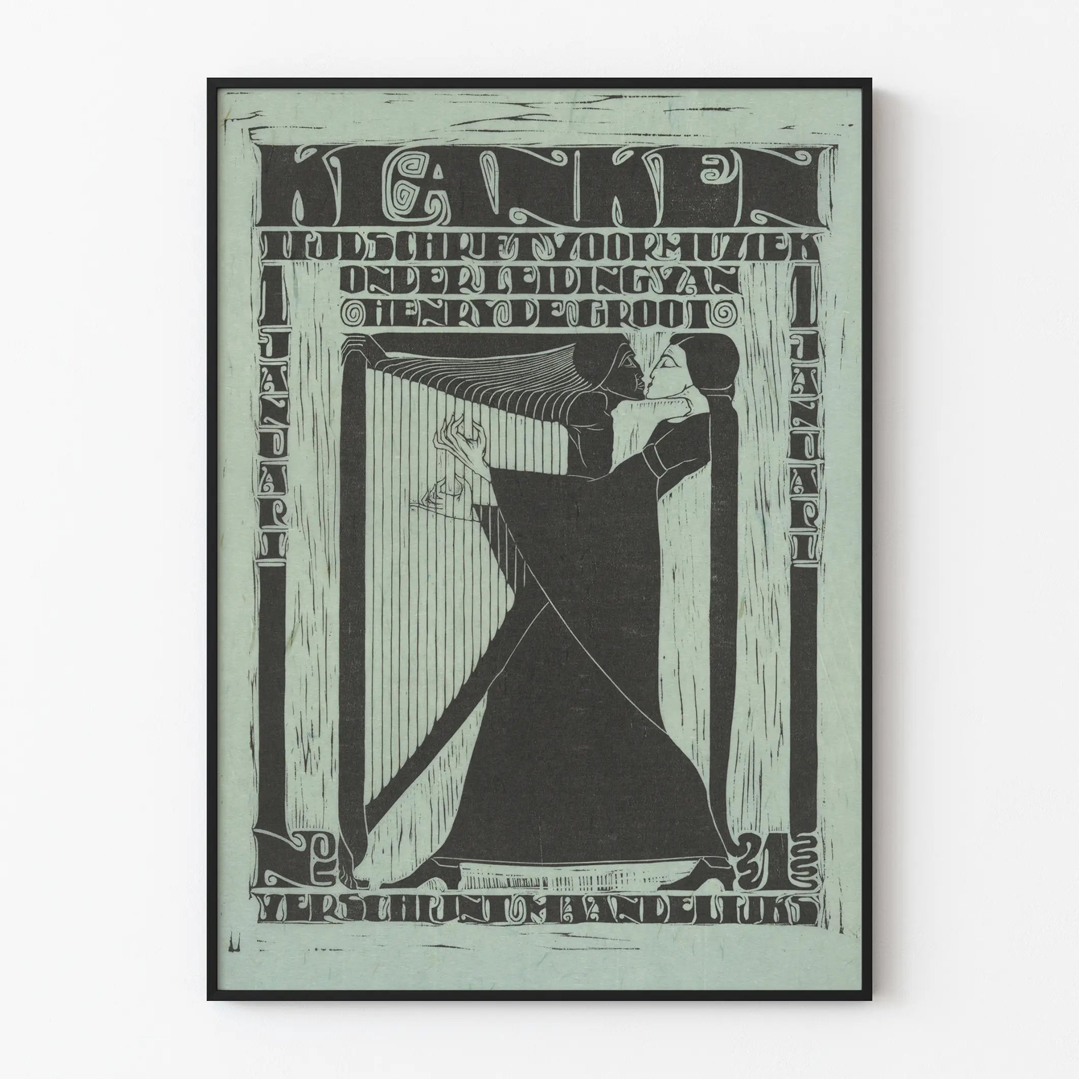 Art Déco Poster Musik Harfe und Umarmtes Paar