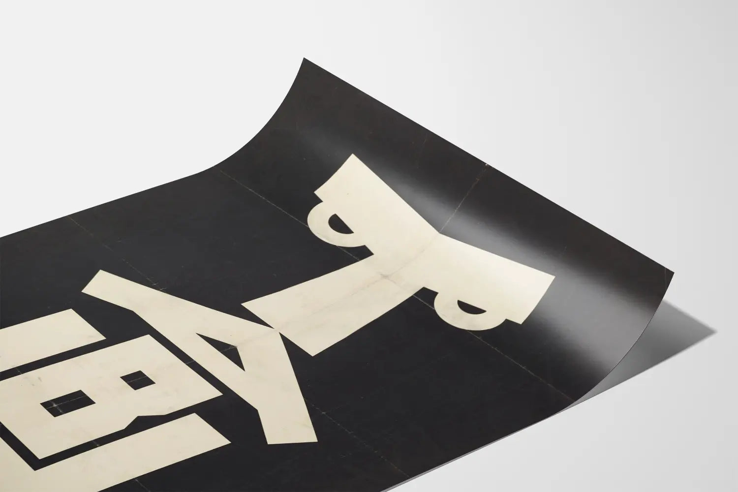 Dieses Plakat findet seinen Platz in einem zeitgenössischen Interieur, in dem grafische Kunst und starke visuelle Ausdruckskraft im Vordergrund stehen. Es passt perfekt zu Räumen, die Originalität und klare Linien schätzen, wie ein Büro, ein Wohnzimmer oder eine persönliche Kunstgalerie. Seine markante Gestaltung setzt einen klaren Blickfang an Ihrer Wand, der durch sein einzigartiges Design und seine ausgeprägten Kontraste die Aufmerksamkeit auf sich zieht.