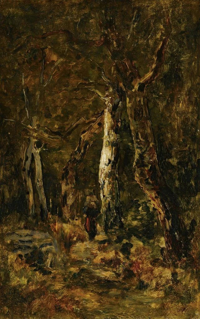 Gemälde Landschaft mit Wald und Figur - László Pál | Kunstdruck
