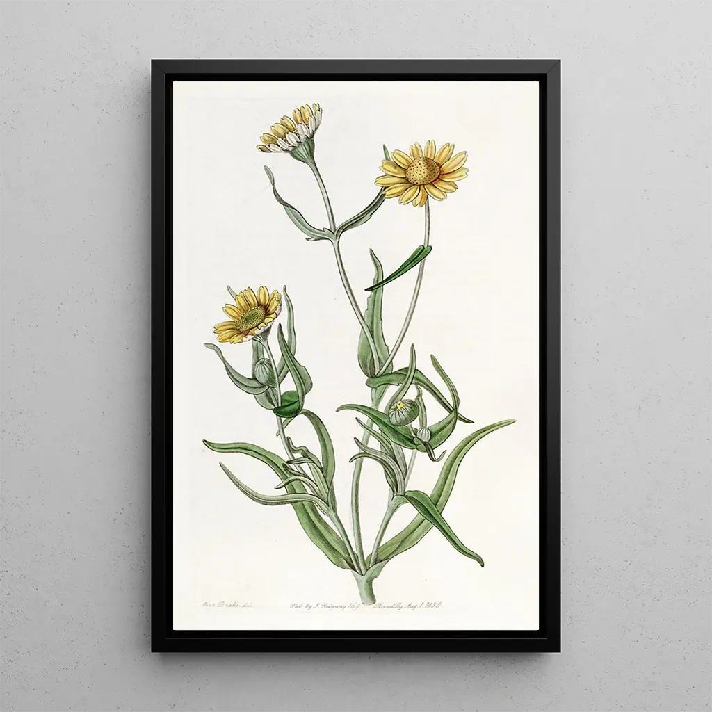 Lasthénie lisse : eine Ode an die florale Zartheit Der Lasthénie lisse, ein faszinierendes Werk von Sydenham Edwards, offenbart die subtile Schönheit einer oft unbekannten Blume. Mit ihren goldenen Tönen und anmutigen Formen erinnert dieses Gemälde an das Sonnenlicht, das durch die Blütenblätter filtert. Die Illustrationstechnik von Edwards, die Präzision und Sensibilität vereint, schafft eine Atmosphäre der Ruhe und Kontemplation. Jedes Detail ist sorgfältig wiedergegeben und erweckt diese zarte Pflanze zum Leben, ein Symbol für die Fülle der Flora. Das Werk lädt zu einem visuellen Spaziergang durch die Natur ein und feiert die Schönheit der kleinen Dinge. Sydenham Edwards : ein Meister der botanischen Illustration Sydenham Edwards, ein botanischer Illustrator des frühen 19. Jahrhunderts, prägte seine Zeit durch seinen einzigartigen Ansatz. Beeinflusst von naturalistischen Strömungen widmete er seine Karriere der präzisen Darstellung der Vielfalt der Pflanzen. Seine Werke, oft in botanischen Veröffentlichungen integriert, zeugen von seinem Engagement, Wissenschaft und Kunst zu verbinden. Der Lasthénie lisse ist emblematisch für seinen Stil, bei dem jede Blume mit großer Sorgfalt dargestellt wird. Edwards trug so zur Blüte der botanischen Illustration bei und wurde zu einer unverzichtbaren Figur in diesem Bereich. Eine dekorative Anschaffung mit vielfältigen Vorteilen Der kunstdruck des Lasthénie lisse ist eine perfekte dekorative Wahl für alle, die die natürliche Schönheit schätzen. Ob im Arbeitsbereich, Wohnzimmer oder Schlafzimmer, dieses Gemälde verleiht jedem Raum eine elegante und frische Note. Seine Druckqualität garantiert eine außergewöhnliche Treue zu den Details des Originalwerks, sodass die Zartheit dieser Blume das ganze Jahr über genossen werden kann. Mit seiner ästhetischen Anziehungskraft wird diese Leinwand zu einem zentralen Element Ihrer Dekoration und ehrt gleichzeitig die Kunst von Sydenham Edwards.