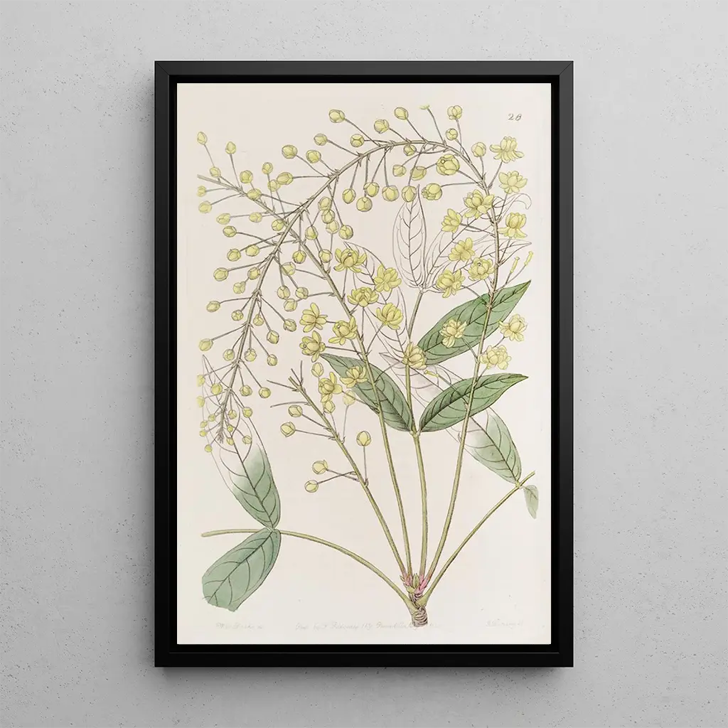 L'épine-vinette à feuilles de frêne fines : eine wilde Schönheit zum Entdecken Die L'épine-vinette à feuilles de frêne fines, mit ihren lebendigen Farbtönen und zarten Formen, erinnert an eine Natur, die sowohl wild als auch kontrolliert ist. Dieses Werk von Sydenham Edwards, bekannt für seine botanischen Illustrationen, fängt die Essenz dieser Pflanze ein. Die reichen Farben, vom tiefen Grün bis zu goldenen Nuancen, verschmelzen harmonisch, um eine lebendige Atmosphäre zu schaffen. Die vom Künstler verwendete Aquarelltechnik ermöglicht es, jedes Detail mit erstaunlicher Präzision wiederzugeben und diese L'épine-vinette zum Leben zu erwecken, als ob sie unter unseren Augen erblühen würde. Sydenham Edwards: ein Pionier der botanischen Illustration Sydenham Edwards, aktiv im frühen 19. Jahrhundert, gilt als einer der großen Meister der botanischen Illustration. Vom romantischen Bewegung beeinflusst, verstand er es, Wissenschaft und Kunst in seinen Werken zu vereinen, sodass jede Illustration ein echtes Kunstwerk ist. Seine Arbeiten wurden weit verbreitet durch Publikationen wie "The Botanical Register", in denen er exotische Pflanzen mit bemerkenswerter Genauigkeit präsentierte. Edwards spielte eine entscheidende Rolle bei der Dokumentation der britischen Flora und trug dazu bei, eine breitere Wertschätzung für die Botanik durch die Kunst zu fördern. Eine dekorative Anschaffung mit vielfältigen Vorteilen Die reproduction der L'épine-vinette à feuilles de frêne fines ist ein ideales dekoratives Stück, um eine natürliche Note in Ihr Zuhause zu bringen. Ob im Wohnzimmer, im Büro oder im Schlafzimmer, dieses Bild zieht die Blicke auf sich und weckt Bewunderung. Die Druckqualität garantiert eine Treue zu den Farben und Details des Originalwerks und verleiht Ihrer Dekoration eine ästhetische Dimension. Mit der Wahl dieses Leinwandbildes entscheiden Sie sich für ein Werk, das nicht nur Ihren Raum verschönert, sondern auch eine faszinierende Geschichte über die Schönheit der Natur erzählt.