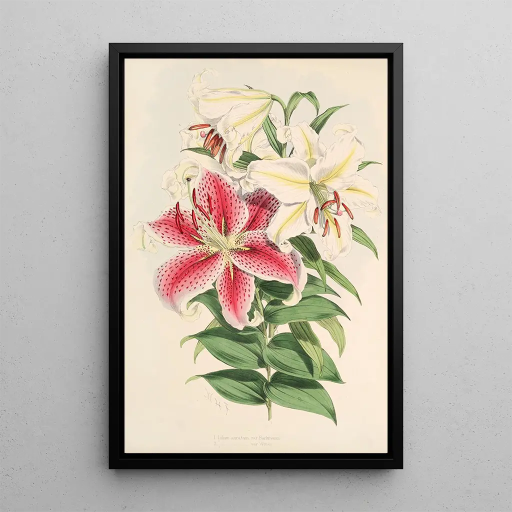 Der kunstdruck von Lilium auratum var Parkmanm ist eine ideale Wahl, um verschiedene Wohnräume zu verschönern, sei es im Wohnzimmer, im Büro oder im Schlafzimmer. Die Druckqualität garantiert eine Farb- und Detailtreue des Originalwerks und verleiht Ihrer Inneneinrichtung einen Hauch von Eleganz und Raffinesse. Dieses Bild, mit seinem unbestreitbaren ästhetischen Reiz, kann als Blickfang in einem Raum oder als ergänzendes Element zu anderen Kunstwerken dienen. Durch die Integration dieses Leinwandbildes in Ihre Dekoration laden Sie die Schönheit der Natur in Ihr Zuhause ein und feiern gleichzeitig das künstlerische Erbe von Walter Hood Fitch.