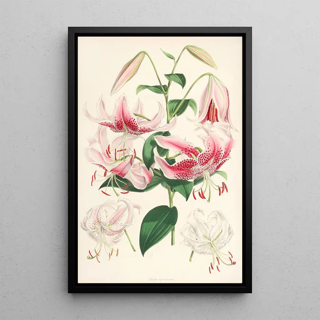 Der kunstdruck von Lilium speciosum ist eine perfekte dekorative Wahl, um einen floralen Akzent in Ihrem Wohnraum zu setzen. Ob im Wohnzimmer, im Büro oder im Schlafzimmer, diese leinwand wird durch ihre Druckqualität und ihre Treue zu den Details des Originalwerks begeistern. Ihre ästhetische Anziehungskraft macht sie zu einem zentralen Element Ihrer Dekoration, das das Interesse und die Bewunderung Ihrer Gäste weckt. Entscheiden Sie sich für diesen kunstdruck und lassen Sie sich von der zeitlosen Schönheit dieser botanischen illustration verzaubern.
