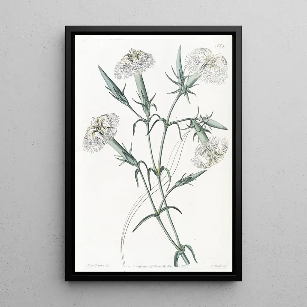 Der Libanon-Nelke, ein ikonisches Werk von Sydenham Edwards, besticht durch seine lebendige Farbpalette und seine detaillierte Ausführung. Diese kunstdruck fängt die Essenz der Natur ein, wobei jede Blüte zu vibrieren scheint im Licht. Die Nuancen von Rosa und Grün verschmelzen harmonisch und schaffen eine Atmosphäre, die sowohl beruhigend als auch belebend wirkt. Die Aquarelltechnik, meisterhaft angewandt, verleiht diesem Gemälde Leichtigkeit und Fließfähigkeit, die zur Betrachtung einladen. Beim Betrachten dieses Werks spürt man fast den zarten Duft der Blume, als wäre sie zum Greifen nah.