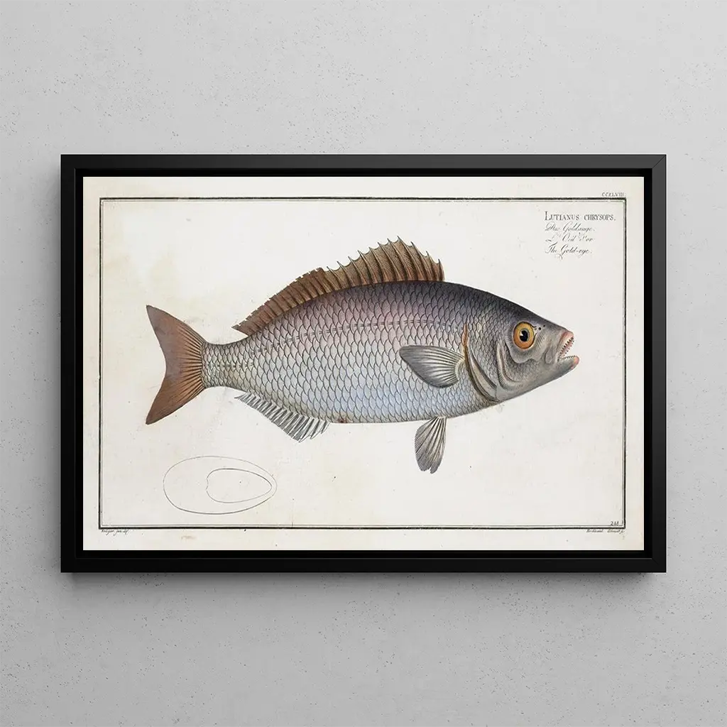 Lutjanus chrysops Le Goldeye : eine Hommage an die Meereskunst Die kunstdrucke von Lutjanus chrysops Le Goldeye, ein ikonisches Werk von Marcus Elieser Bloch, entführen uns in eine faszinierende Wasserwelt. Dieses bild, reich an details, hebt die pracht dieses fisches mit leuchtenden farben hervor. Die schattierungen von blau und silber, kombiniert mit touches von gelb, schaffen eine helle und lebendige atmosphäre. Die aquarelltechnik, meisterhaft vom künstler beherrscht, ermöglicht es, die flüssigkeit des wassers und die zartheit der schuppen einzufangen, und bietet eine wahre einladung, die natur zu bewundern. Marcus Elieser Bloch : ein pionier der künstlerischen ichthyologie Marcus Elieser Bloch, naturalist und künstler des 18. jahrhunderts, ist bekannt für seine beiträge zur ichthyologie, der wissenschaft der fische. Sein werk, oft geprägt von einem detailverliebten ansatz und einer wissenschaftlichen herangehensweise, ist im naturalismus verankert. beeinflusst von den seefahrten seiner zeit, konnte Bloch kunst und wissenschaft verbinden und würdigt die aquatische biodiversität. Seine illustrationen, darunter der kunstdruck von Lutjanus chrysops Le Goldeye, sind nicht nur kunstwerke, sondern auch wertvolle dokumente zum verständnis der meeresarten. Eine dekorative anschaffung mit vielfältigen vorteilen Der kunstdruck des bildes Lutjanus chrysops Le Goldeye ist eine ideale dekorative wahl, um ihr zuhause zu verschönern. Ob im wohnzimmer, büro oder schlafzimmer, diese leinwand bringt eine note von eleganz und frische. Die druckqualität garantiert eine treue wiedergabe der farben und details des originalwerks, und bietet gleichzeitig eine unbestreitbare ästhetische anziehungskraft. Durch die integration dieses werkes in ihre dekoration laden sie die schönheit der natur in ihren wohnraum ein und feiern das künstlerische erbe von Marcus Elieser Bloch.