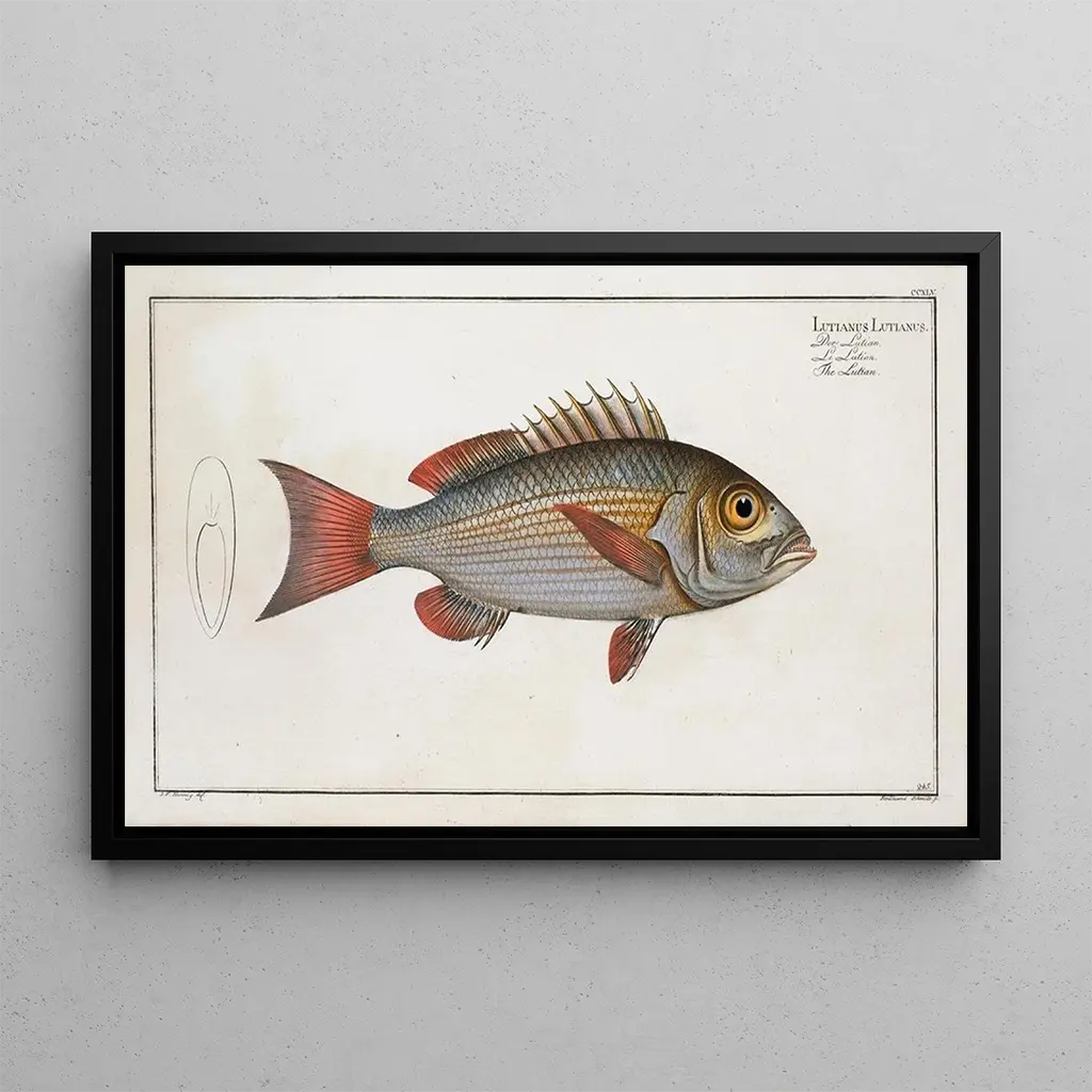 Lutjanus lutjanus : ein Tauchgang in die Meeresabgründe Die kunstdruck von Lutjanus lutjanus von Marcus Elieser Bloch entführt uns unter die kristallklaren Wasser, wo dieser Fisch mit leuchtenden Farben in einer faszinierenden Wasserwelt lebt. Die Nuancen von Blau und Grün verschmelzen harmonisch, während die detaillierten Schuppen und Flossen das Auge fesseln. Bloch, ein wahrer Naturforscher, verwendet eine Aquarelltechnik, die diesem Geschöpf Leben einhaucht und die Meeresatmosphäre fast greifbar macht. Das Licht spielt auf den Oberflächen und erzeugt einen Bewegungseffekt, der die Flüssigkeit des Wassers evoziert. Dieses Werk ist eine Feier der Meeresbiodiversität und lädt zum Staunen und zur Kontemplation ein. Marcus Elieser Bloch : Pionier der zoologischen Illustration Marcus Elieser Bloch, aktiv im 18. Jahrhundert, gilt als einer der Vorreiter der zoologischen illustration. Ursprünglich aus Deutschland stammend, widmete er sein Leben der Erforschung und Darstellung von Meeresarten, beeinflusst von den wissenschaftlichen Expeditionen seiner Zeit. Seine Werke, darunter die kunstdruck von Lutjanus lutjanus, sind nicht nur künstlerisch, sondern auch pädagogisch wertvoll und tragen zum Wissen über Arten bei. Bloch verstand es, wissenschaftliche Präzision mit künstlerischer Sensibilität zu verbinden, und wurde so zu einer ikonischen Figur der naturalistischen Bewegung. Sein Erbe lebt in der Welt der Kunst und Wissenschaft weiter und inspiriert zahlreiche Künstler und Biologen. Eine dekorative Anschaffung mit vielfältigen Vorzügen Der kunstdruck des Gemäldes Lutjanus lutjanus ist ein ideales Dekorationsstück für verschiedene Räume, sei es Wohnzimmer, Büro oder Schlafzimmer. Seine Druckqualität garantiert eine bemerkenswerte Treue zu den Originaldetails, sodass jede Nuance und Textur geschätzt werden kann. Dieses Bild verleiht Ihrem Interieur eine Note von Eleganz und Ruhe und evoziert gleichzeitig die Schönheit des Meereslebens. Seine ästhetische Anziehungskraft macht es zu einer ausgezeichneten Wahl für Natur- und Kunstliebhaber und fügt Ihrer Dekoration eine fesselnde visuelle Dimension hinzu. Gönnen Sie sich diese Leinwand und lassen Sie sich vom aquatischen Universum, das sie zeigt, verzaubern.