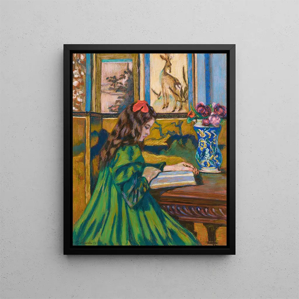 Im faszinierenden Universum des Impressionismus hebt sich das Werk "Madeleine Guillaumin lisant" von Armand Guillaumin durch seine Zartheit und Intimität hervor. Dieses Gemälde, das einen Moment der Gelassenheit und Konzentration einfängt, taucht uns in den Alltag des Künstlers und seines Modells, Madeleine Guillaumin, eine Schriftstellerin und Muse, ein. Durch dieses Werk lädt uns Armand Guillaumin ein, einen eingefrorenen Moment zu teilen, in dem die Außenwelt zu schwinden scheint zugunsten des Lesens. Das sanfte Licht, das vom Gemälde ausgeht, und die beruhigte Haltung der Lesenden versetzen uns in eine poetisch geprägte Welt, in der jedes Detail eine Geschichte erzählt. Stil und Einzigartigkeit des Werks Der Stil von Armand Guillaumin ist geprägt von einer mutigen Verwendung von Farbe und Licht, charakteristisch für den Impressionismus. In "Madeleine Guillaumin lisant" schaffen die lebendigen Pinselstriche und die leuchtenden Töne eine warme und einladende Atmosphäre. Die Komposition ist zwar einfach, aber voller Emotionen. Die Art, wie das Licht sich auf den Seiten des Buches widerspiegelt und das Gesicht von Madeleine streichelt, zeugt von einer technischen Meisterschaft, die die Sensibilität des Künstlers offenbart. Jedes Element des Gemäldes, vom Sessel, auf dem sie sitzt, bis zum verschwommenen Hintergrund, trägt zur allgemeinen Harmonie des Werks bei. Dieses Gemälde ist weit mehr als eine einfache Darstellung; es wird zu einem offenen Fenster in die Intimität der Lesenden und fängt die Essenz der Kontemplation ein. Der Künstler und sein Einfluss Armand Guillaumin, eine ikonische Figur des Impressionismus, hat sich einen Platz unter den großen Meistern seiner Zeit erobert. Sein künstlerischer Werdegang, geprägt von Begegnungen mit Persönlichkeiten wie Claude Monet und Camille Pissarro, hat sein Werk tief beeinflusst. Guillaumin zeichnet sich durch seine Fähigkeit aus, menschliche Emotionen durch Landschaften und Szenen des Alltags zu übersetzen. "Madeleine Guillaumin lisant" zeugt von diesem intimen Ansatz, bei dem die menschliche Figur mit spürbarer Zärtlichkeit hervorgehoben wird. Seine Arbeit hat zudem den Weg für Generationen von Künstlern geebnet, die danach streben, den flüchtigen Moment und die vergängliche Schönheit einzufangen.