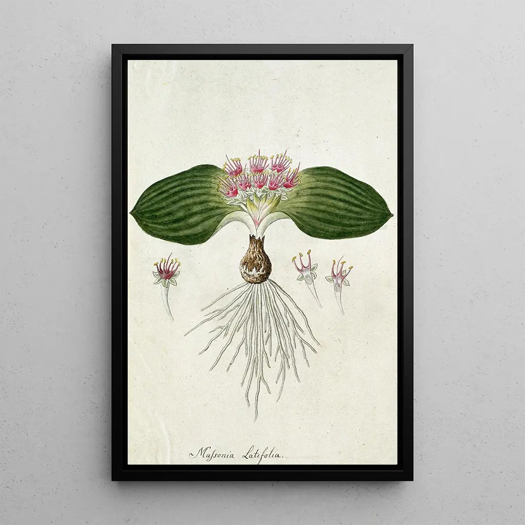 Massonia depressa Houtt: eine zarte Harmonie aus Formen und Farben Die kunstdruck von Massonia depressa Houtt entführt uns in eine blumige Welt voller Sanftheit. Die Schattierungen von Grün und Weiß verschmelzen anmutig und schaffen eine beruhigende Atmosphäre. Jeder Blütenblatt scheint eine Geschichte zu erzählen, während die feinen Details das außergewöhnliche Talent des Künstlers offenbaren. Die Aquarelltechnik, die mit Feinfühligkeit angewendet wird, fängt das Licht und die Textur der Blumen ein und lädt den Betrachter zu einer ruhigen Betrachtung ein. Dieses Gemälde, eine wahre Ode an die Natur, ruft die vergängliche Schönheit der Pflanzen hervor und vermittelt gleichzeitig ein Gefühl von Frische und Erneuerung. Robert Jacob Gordon: ein Entdecker der Pflanzenwelt im 18. Jahrhundert Robert Jacob Gordon, Botaniker und Künstler des 18. Jahrhunderts, verstand es, Wissenschaft und Kunst durch seine Werke zu verbinden. Als unermüdlicher Reisender durchquerte er Südafrika und dokumentierte die lokale Flora mit bemerkenswerter Präzision. Seine Einflüsse reichen von europäischen botanischen Traditionen bis hin zu exotischen Entdeckungen, was ihm ermöglichte, Werke zu schaffen, die über einfache Darstellungen hinausgehen. Gordon spielte eine Schlüsselrolle bei der Erweiterung der botanischen Kenntnisse seiner Zeit, und seine Illustrationen, wie die von Massonia depressa, sind zu Referenzwerken für Wissenschaftler und Künstler geworden. Sein Erbe besteht weiter und zeugt von der Bedeutung sorgfältiger Naturbeobachtung. Eine dekorative Anschaffung mit vielfältigen Vorteilen Die wahl für den kunstdruck von Massonia depressa Houtt ist eine Entscheidung für eine Leinwand, die Ihr Interieur mit Eleganz verschönert. Ob im Wohnzimmer, im Büro oder im Schlafzimmer, dieses Bild bringt einen Hauch von Frische und Gelassenheit in Ihre Dekoration. Die Druckqualität garantiert eine Treue zu den Farben und Details des Originalwerks, was diesen kunstdruck zu einem wahren künstlerischen Schmuckstück macht. Die ästhetische Anziehungskraft dieses Werks liegt in seiner Fähigkeit, sich harmonisch in verschiedene Einrichtungsstile einzufügen und gleichzeitig die Bewunderung Ihrer Gäste zu wecken. Durch die Hinzufügung dieses Stücks zu Ihrer Sammlung investieren Sie in ein zeitloses Kunstwerk.