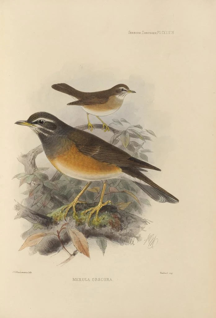 Henry Seebohm, Naturforscher und Ornithologe des 19. Jahrhunderts, vereinte seine Leidenschaft für Vögel mit seinem künstlerischen Talent. Aktiv in einer Zeit, in der die Erforschung der Fauna an Bedeutung gewann, wurde er von den naturalistischen Strömungen seiner Zeit beeinflusst und strebte danach, die Schönheit der Natur präzise darzustellen. Seine Werke, darunter Merula Obscura, zeugen von seinem Engagement für Wissenschaft und Kunst. Durch die Darstellung seltener und oft unbekannter Arten trug Seebohm zur Aufklärung des Publikums über die Biodiversität bei und hinterließ ein nachhaltiges künstlerisches Erbe.