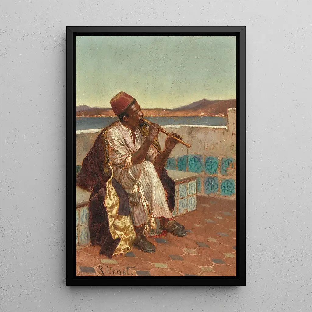 Rudolf Ernst, österreichischer Maler des 19. Jahrhunderts, ist bekannt für seine Darstellungen orientalischer Szenen, inspiriert von seinen Reisen nach Nordafrika und im Nahen Osten. Sein Stil, der Realismus und impressionistische Einflüsse verbindet, ermöglicht es ihm, die Farbvielfalt und Texturen der Landschaften und Figuren, die er malt, einzufangen. Im Herzen der orientalistischen Bewegung hat Ernst das Publikum mit seinen ausdrucksstarken Werken begeistert, die seine Bewunderung für die Kulturen, denen er begegnet ist, widerspiegeln. "Musicien sur la terrasse" veranschaulicht perfekt sein Talent, Lebensmomente voller Poesie und Authentizität festzuhalten.