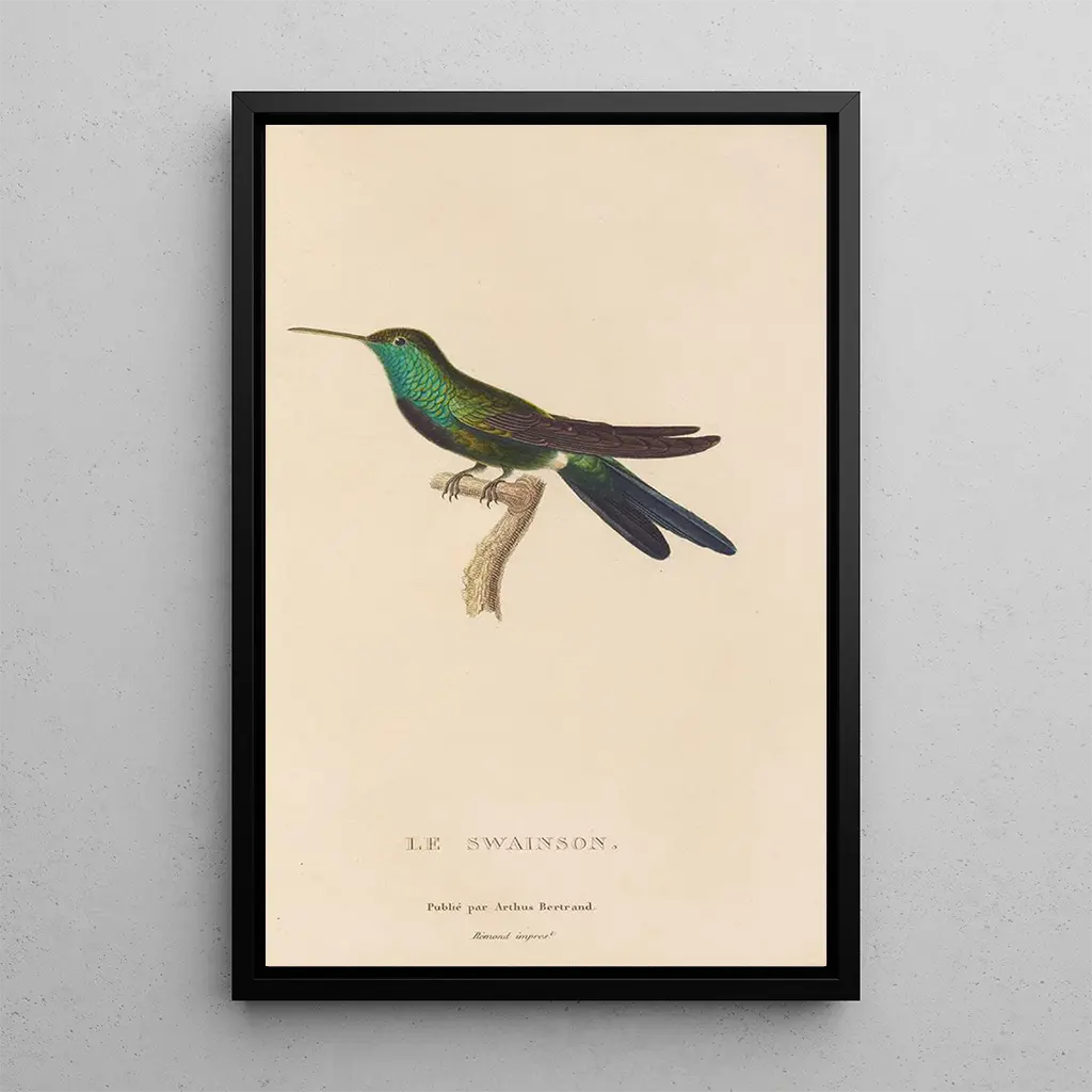 Die kunstdruck Histoire naturelle des oiseaux-mouches Pl71 bietet eine faszinierende Sicht auf diese zarten Kreaturen. Die lebendigen und schimmernden Farben der Gefieder, die von leuchtendem Grün bis zu tiefem Blau reichen, fangen das Auge ein und wecken eine Atmosphäre von Leichtigkeit und Anmut. Die von Lesson verwendete Gravurtechnik ermöglicht es, jedes Detail mit bemerkenswerter Präzision wiederzugeben, von den Federn bis zu den eleganten Formen der Vögel. Dieses Bild lädt zur Kontemplation ein und versetzt den Betrachter in eine Welt, in der die Natur in ihrer ganzen Pracht offenbart wird.
