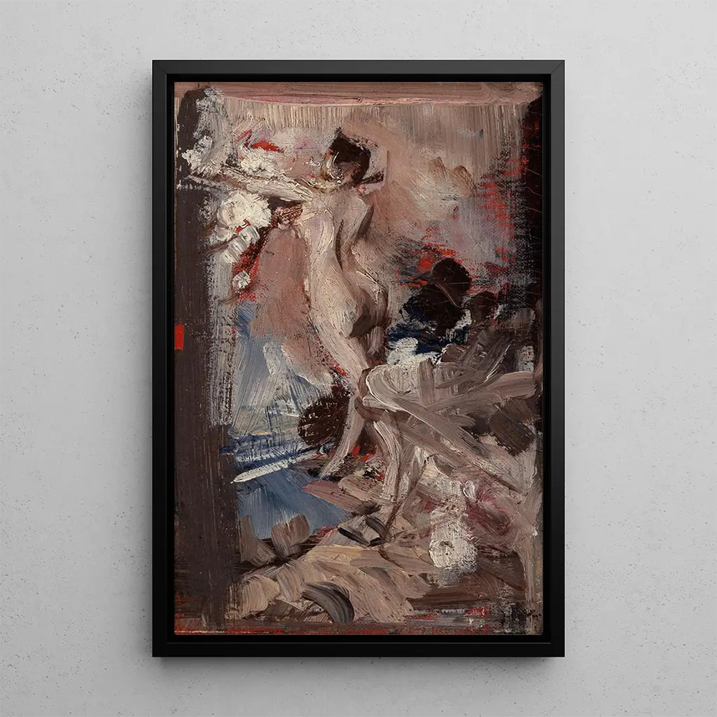 In "Nu féminin mit Tigerfell" bietet Giovanni Boldini eine mutige Vision der weiblichen Schönheit, bei der sich Sinnlichkeit mit Exotik verbindet. Die Komposition zeigt eine nackte Frau, die in ein Tigerfell gehüllt ist, das im Kontrast zur Sanftheit ihrer Haut steht. Die warmen Farben und die reichen Texturen schaffen eine Atmosphäre, die sowohl intim als auch provokativ ist. Boldini gelingt es mit seiner Meisterschaft im Umgang mit Licht und Schatten, das Wesen der Weiblichkeit einzufangen und den Betrachter einzuladen, diese Dualität zwischen Stärke und Zartheit zu erkunden.
