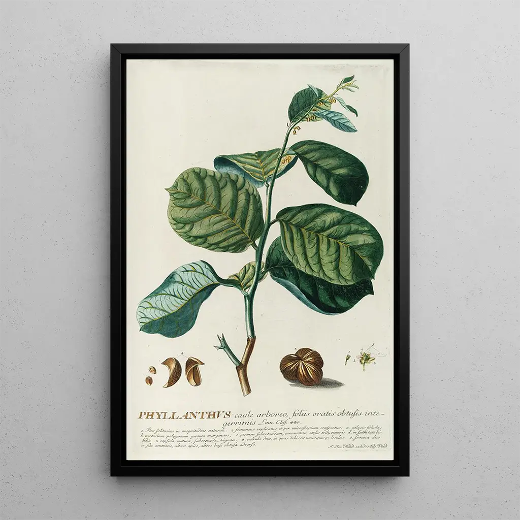 PhylIanthus : eine Erforschung der pflanzlichen Vielfalt Die kunstdrucke von PhylIanthus, ein faszinierendes werk von Georg Dionysius Ehret, entführen uns in eine welt, in der die pflanzliche vielfalt ins licht gerückt wird. Die zarten nuancen der blätter und blüten, sorgfältig illustriert, offenbaren die komplexität und die schönheit dieser pflanze. Die graviertechnik, die Ehret anwendete, ermöglicht es, texturen und details mit bemerkenswerter präzision einzufangen. Die atmosphäre, die von diesem bild ausgeht, ist sowohl beruhigend als auch anregend und lädt zu einer visuellen erkundung der wunder der natur ein. Jedes element der komposition scheint vor eigenem leben zu vibrieren, das auge und die vorstellungskraft fesselnd. Georg Dionysius Ehret : die kunst im dienst der wissenschaft Georg Dionysius Ehret, botaniker und illustrateur des 18. jahrhunderts, revolutionierte die kunst der botanischen illustration. Geboren in Deutschland, wurde er von den wissenschaftlichen fortschritten seiner zeit beeinflusst und arbeitete mit renommierten naturforschern zusammen. Seine werk, darunter PhylIanthus, zeugt von einem rigorosen und künstlerischen ansatz in der botanischen kunst, der wissenschaftliche präzision mit ästhetischer sensibilität verbindet. Ehret gelang es, das wesentliche der pflanzen einzufangen, wodurch seine illustrations zu unverzichtbaren referenzen für botaniker und kunstliebhaber wurden. Sein erbe besteht fort und macht ihn zu einer ikonischen figur der botanischen kunst. Eine dekorative anschaffung mit vielfältigen vorteilen Der kunstdruck von PhylIanthus ist eine kluge dekorative wahl für diejenigen, die ihrem wohnraum einen touch natur verleihen möchten. Ob im wohnzimmer, büro oder schlafzimmer, dieses bild fügt sich harmonisch in verschiedene einrichtungsstile ein. Seine druckqualität und die treue zu den originalen details machen es zu einem ansprechenden und fesselnden bild. Mit der wahl dieses werkes entscheiden sie sich für ein stück, das nicht nur ihr interieur verschönert, sondern auch bewunderung und nachdenklichkeit über die schönheit der natur weckt.