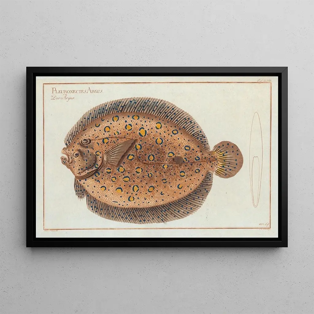 Pleuronectes argus La plie d'Argus : eine faszinierende Meeresstudie Die kunstdruck von Pleuronectes argus La plie d'Argus, geschaffen von Marcus Elieser Bloch, bietet einen faszinierenden Einblick in die Unterwasserwelt. Dieses Gemälde hebt den Flachfisch hervor, mit seinen zarten Farben und subtilen Mustern, die die Schönheit der Meeresböden widerspiegeln. Die Technik von Bloch, die wissenschaftliche Präzision mit künstlerischer Sensibilität verbindet, ermöglicht es, die Form und Textur dieses Fisches auf eine sowohl realistische als auch poetische Weise einzufangen. Die Atmosphäre, die von diesem Werk ausgeht, ist die einer Erkundung der Wunder der Natur, die zu Entdeckung und Staunen einlädt. Marcus Elieser Bloch: Pionier der ichthyologischen Illustration Marcus Elieser Bloch, geboren 1723, war ein deutscher Naturforscher und illustrator, bekannt für seine Beiträge zur Fischforschung. Sein bedeutendes Werk, "Naturgeschichte der ausländischen Fische", markierte einen Wendepunkt in der wissenschaftlichen Illustration, indem es Strenge und Ästhetik vereinte. Bloch reiste durch Europa und darüber hinaus, sammelte Exemplare und führte detaillierte Studien durch. Sein innovativer Ansatz hat das Verständnis der marinen Biodiversität verbessert, und seine Werke inspirieren weiterhin Biologie- und Kunstliebhaber. Der kunstdruck von Pleuronectes argus zeugt von seinem Erbe und seinem Einfluss auf Kunst und Wissenschaft. Eine dekorative Anschaffung mit vielfältigen Vorzügen Der kunstdruck von Pleuronectes argus La plie d'Argus ist ein dekoratives Stück, das Natur- und Meeresliebhaber begeistern wird. Ideal für ein Büro, ein Badezimmer oder eine Küche, bringt dieses Leinwandbild einen Hauch von Eleganz und Frische in Ihr Zuhause. Die Druckqualität garantiert eine detailgetreue Wiedergabe des Originalwerks, verbunden mit einem unbestreitbaren ästhetischen Reiz. Mit diesem kunstdruck fügen Sie Ihrer Dekoration eine künstlerische und wissenschaftliche Dimension hinzu und feiern gleichzeitig die Schönheit der Meereskreaturen.