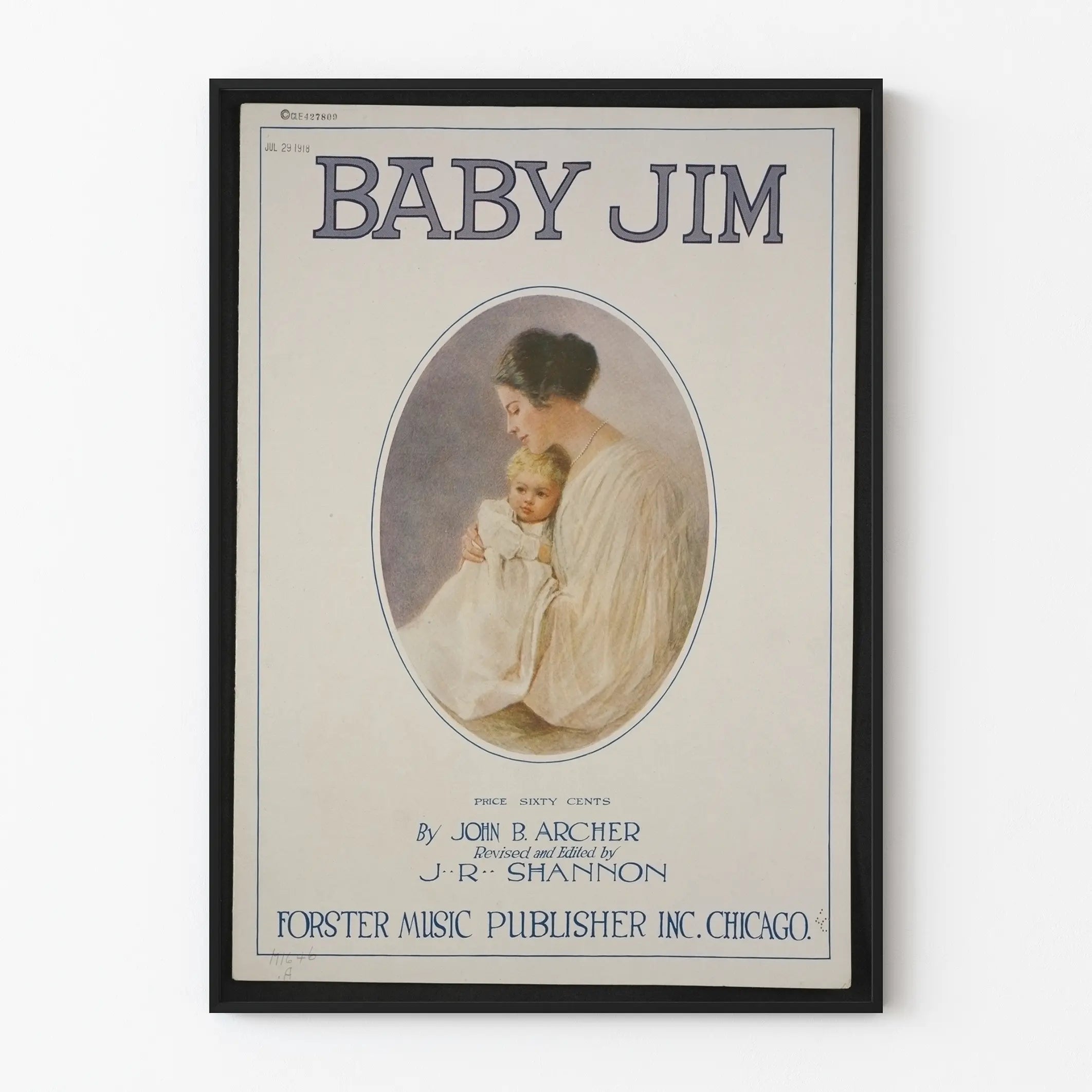 Entdecken Sie dieses Vintage-Poster mit dem Titel „Baby Jim“, eine Wanddekoration voller Zärtlichkeit und Eleganz. Dieser kunstdruck zeigt eine Mutter, die ihr Baby liebevoll im Arm hält, beide in Weiß gekleidet, was der Darstellung eine ruhige und zarte Atmosphäre verleiht. Umrahmt von einem schlichten und klaren Rahmen, besticht das Poster durch ein schlichtes und zeitloses Design, das sich für Innenräume eignet, die eine Prise Nostalgie und Gelassenheit vermitteln möchten.