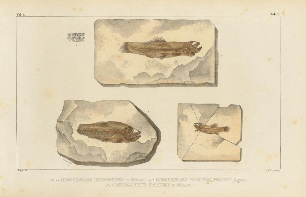 Recherches sur les Poissons Fossiles Pl207 : eine Reise durch die Zeit Die kunstdruck "Recherches sur les Poissons Fossiles Pl207" von Louis Agassiz bietet einen faszinierenden Einblick in die Paläontologie durch präzise und detaillierte Illustrationen prähistorischer Fische. Jedes Element der Komposition ist sorgfältig ausgearbeitet und hebt die Vielfalt der Arten und ihre aquatische Umgebung hervor. Die erdigen Farbtöne und die zarten Nuancen der Fossilien schaffen eine Atmosphäre, die sowohl wissenschaftlich als auch künstlerisch ist, und laden den Betrachter ein, die Geheimnisse des einstigen Meereslebens zu erkunden. Dieses Werk ist eine wahre Feier der wissenschaftlichen Forschung und der Ästhetik. Louis Agassiz: ein Pionier der modernen Wissenschaft Louis Agassiz, schweizerischer Naturforscher und Geologe des 19. Jahrhunderts, ist bekannt für seine bedeutenden Beiträge zur Biologie und Paläontologie. Seine innovative Herangehensweise und seine vertieften Forschungen zu Fossilien revolutionierten unser Verständnis der Artenentwicklung. Agassiz spielte auch eine Schlüsselrolle bei der Etablierung der modernen Wissenschaft, indem er die künstlerische Beobachtung in die wissenschaftliche Forschung integrierte. Seine Arbeit hat nachhaltigen Einfluss auf die Naturwissenschaften, und seine Illustrationen, wie die von "Recherches sur les Poissons Fossiles", zeugen von seinem Engagement, Wissenschaft zugänglich und visuell fesselnd zu machen. Eine dekorative Anschaffung mit vielfältigen Vorzügen Der kunstdruck von "Recherches sur les Poissons Fossiles Pl207" ist ein einzigartiges Stück, um Ihre Inneneinrichtung zu bereichern. Ob im Büro, in einer Bibliothek oder im Studienzimmer – diese Leinwand verleiht Eleganz und intellektuelle Neugier. Die Druckqualität garantiert eine Treue zu den Originaldetails und bietet gleichzeitig eine ästhetische Anziehungskraft, die Wissenschafts- und Kunstliebhaber begeistern wird. Durch die Integration dieses Werks in Ihren Raum schaffen Sie eine inspirierende Umgebung, die zum Nachdenken und Staunen anregt.