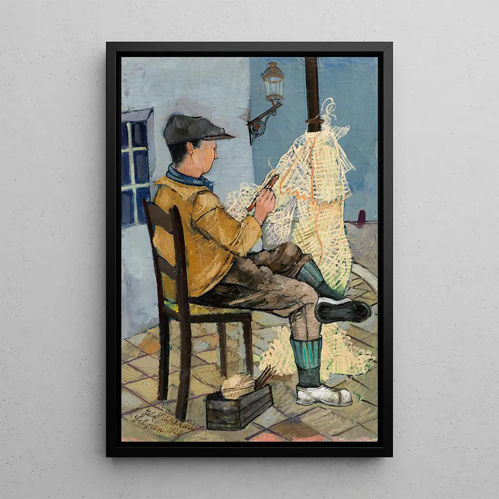 Der kunstdruck von "Reparatur von Netzen" ist ein dekoratives Stück, das Ihr Zuhause bereichern wird, sei es im Wohnzimmer, Büro oder Schlafzimmer. Die Druckqualität garantiert eine bemerkenswerte Treue zum Originalwerk, sodass Sie die ganze Intensität der Kunst von Nussbaum spüren können. Dieses Bild verleiht Ihrer Dekoration eine Note von Authentizität und Tiefe und regt gleichzeitig Gespräche über seine bewegende Botschaft an. Durch die Integration dieses Leinwandbildes in Ihren Raum verschönern Sie nicht nur Ihre Umgebung, sondern laden auch zur Reflexion über universelle Themen wie Kampf und Widerstandsfähigkeit ein.