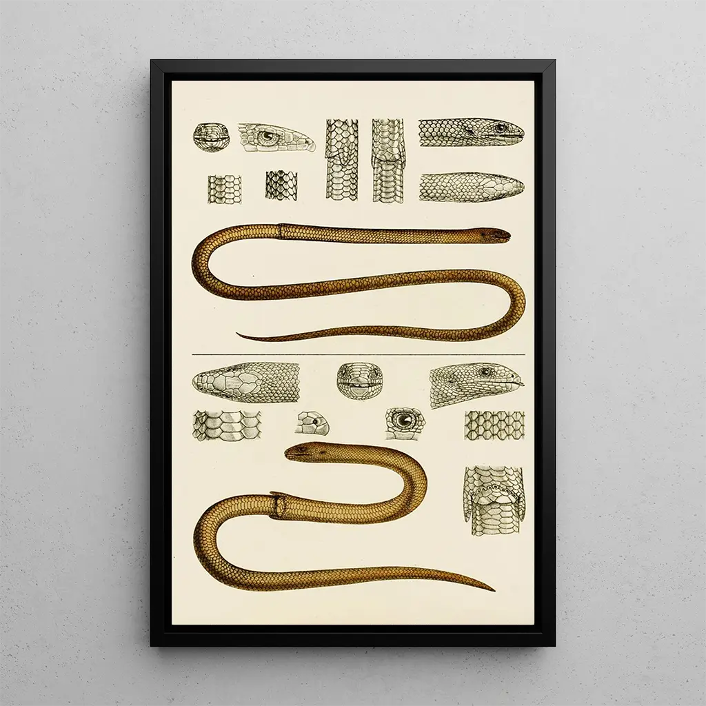 Reptilien III : eine faszinierende Erkundung der Biodiversität In diesem fesselnden Werk, Reptilien III, taucht Frederick McCoy uns in eine reiche und lebendige Naturwelt ein. Die Komposition hebt leuchtende Reptilien hervor, von tiefem Grün bis zu leuchtendem Gelb, und schafft einen beeindruckenden Kontrast. Die mit Meisterschaft angewandte Aquarelltechnik verleiht der Gesamtheit Leichtigkeit, während sie gleichzeitig feine Details ermöglicht. Die Atmosphäre, die von diesem Gemälde ausgeht, ist sowohl ruhig als auch faszinierend und lädt den Betrachter ein, diese oft unbekannten und missverstandenen Kreaturen genauer zu betrachten. McCoy gelingt es, das Wesen dieser Tiere einzufangen und ihre Schönheit sowie Komplexität zu offenbaren. Frederick McCoy : ein Pionier der wissenschaftlichen Illustration Frederick McCoy, aktiv im 19. Jahrhundert, ist bekannt für seine Beiträge zur wissenschaftlichen Illustration, insbesondere im Bereich der Zoologie. Als Naturforscher ausgebildet, wurde er von den Entdeckungen seiner Zeit beeinflusst, insbesondere von den Entdeckern und Wissenschaftlern, die unser Verständnis der Tierwelt erweitert haben. Seine Werke, wie Reptilien III, zeugen von seinem Engagement, die Biodiversität präzise und ästhetisch zu dokumentieren. McCoy spielte eine Schlüsselrolle bei der Bildung der Öffentlichkeit über Tierarten und machte seine Illustrationen nicht nur künstlerisch, sondern auch pädagogisch wertvoll, wodurch er einen bleibenden Eindruck in der Geschichte der wissenschaftlichen Kunst hinterließ. Eine dekorative Anschaffung mit vielfältigen Vorzügen Der kunstdruck von Reptilien III ist ein dekoratives Stück, das jeden Raum bereichern kann, sei es ein Wohnzimmer, ein Büro oder ein Schlafzimmer. Die Druckqualität garantiert lebendige Farben und präzise Details, was eine bemerkenswerte Treue zum Originalwerk bietet. Durch die Integration dieses Bildes in Ihre Dekoration verleihen Sie Ihrem Raum Eleganz und Gelehrsamkeit und regen gleichzeitig Gespräche über Natur und Biodiversität an. Die ästhetische Anziehungskraft dieses Gemäldes liegt in seiner Fähigkeit, die Fantasie zu beflügeln, und macht diesen kunstdruck zur idealen Wahl für alle, die Kunst und Wissenschaft schätzen.