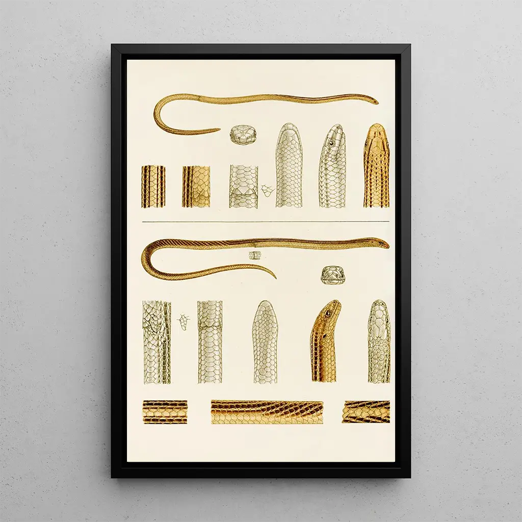 Der Kunstdruck Reptilien IV ist eine wertvolle Ergänzung jeder Kunstsammlung und bringt einen Hauch Natur und Eleganz in Ihr Zuhause. Ob im Wohnzimmer, im Büro oder im Schlafzimmer, dieses Bild zieht die Aufmerksamkeit auf sich und weckt Interesse. Die Druckqualität garantiert eine Farbtreue und Detailgenauigkeit des Originalwerks und sorgt für ein bereicherndes visuelles Erlebnis. Mit diesem Kunstdruck entscheiden Sie sich für eine Dekoration, die Ästhetik und Bildung verbindet und die Schönheit der natürlichen Welt feiert. Dieser Kunstdruck ist die ideale Wahl für alle, die ihren Raum verschönern und gleichzeitig ihre Liebe zur Kunst und Wissenschaft zum Ausdruck bringen möchten.