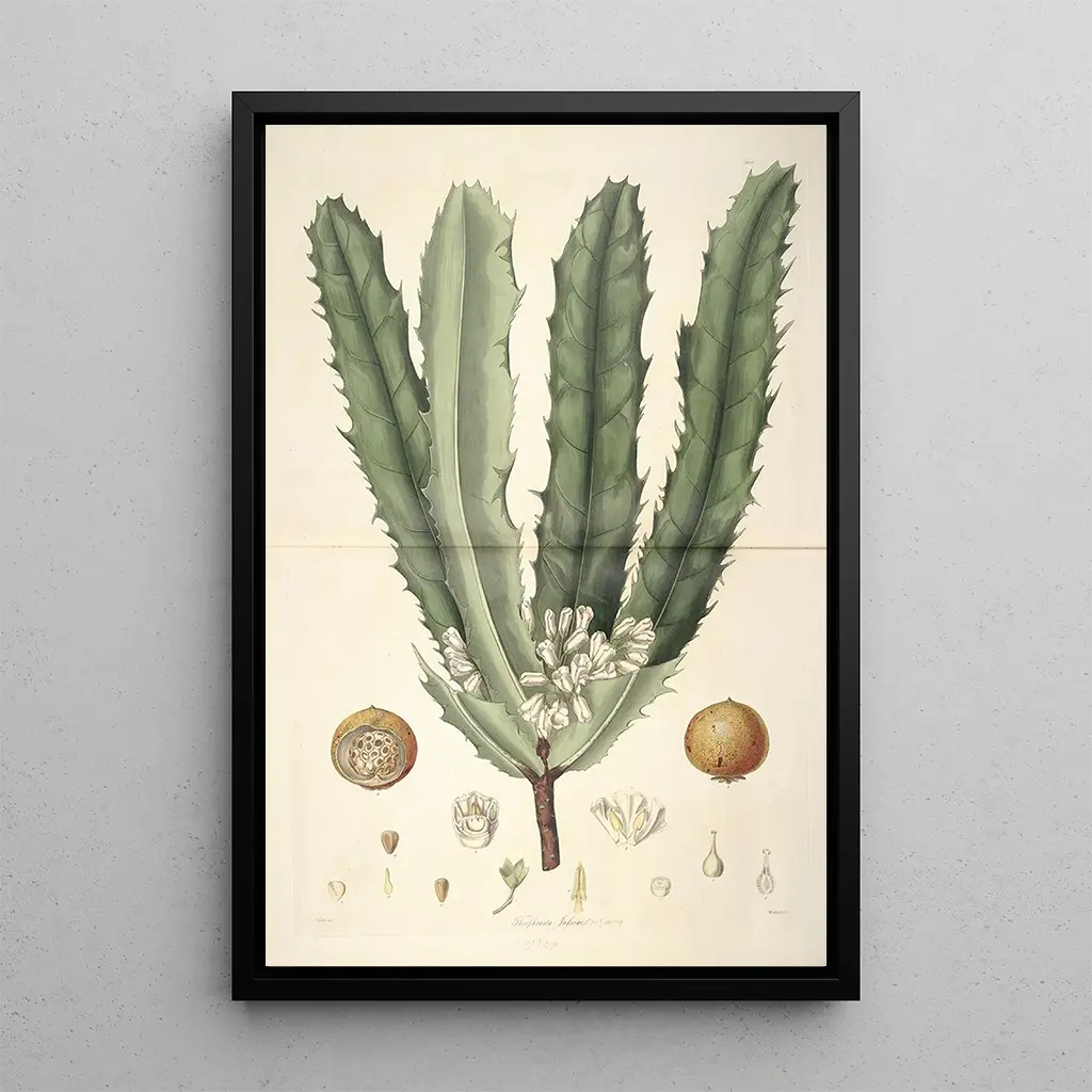Die kunstdruck Collectanea botanica Pl26 entführt uns in eine lebendige und zarte Blumenwelt. Die Nuancen von Grün, Rosa und Gelb verschmelzen harmonisch und schaffen eine Komposition, die die vergängliche Schönheit der Pflanzen widerspiegelt. Jedes Detail ist sorgfältig wiedergegeben, hebt die Textur der Blütenblätter und die Feinheit der Blätter hervor. Die von John Lindley verwendete Gravurtechnik verleiht diesem Werk eine visuelle Tiefe, die fast tastbar ist. Die Atmosphäre, die davon ausgeht, lädt zur Kontemplation und zum Staunen ein, als befände man sich in einem üppigen Garten, in dem jede Blume eine Geschichte erzählt. John Lindley: Pionier der Botanik im 19. Jahrhundert John Lindley, britischer Botaniker und Gärtner des 19. Jahrhunderts, spielte eine entscheidende Rolle bei der Erforschung und Klassifizierung von Pflanzen. Beeinflusst von den wissenschaftlichen Entdeckungen seiner Zeit, trug er zur Popularisierung der Botanik durch seine Veröffentlichungen und Illustrationen bei. Lindley war auch ein leidenschaftlicher Verfechter der Gartenbaukunst und bemühte sich, das Wissen über Pflanzen für die breite Öffentlichkeit zugänglich zu machen. Sein Werk, Collectanea botanica, zeugt von seinem Engagement für Wissenschaft und Ästhetik und markiert eine Epoche, in der Botanik und Kunst sich vereinten, um die Vielfalt der Natur zu feiern. Eine dekorative Anschaffung mit vielfältigem Nutzen Der kunstdruck des Gemäldes Collectanea botanica Pl26 ist ein ideales Dekorationsstück, um Ihr Zuhause zu bereichern, sei es im Wohnzimmer, Büro oder Schlafzimmer. Seine Druckqualität und die Treue zu den Originaldetails machen ihn zu einer attraktiven Wahl für Kunst- und Naturliebhaber. Durch die Integration dieses Leinwandbildes in Ihre Dekoration bringen Sie einen Hauch Frische und Eleganz in Ihren Raum und regen gleichzeitig Gespräche über die Schönheit der Pflanzenwelt an. Dieses Werk, sowohl ästhetisch als auch informativ, wird alle begeistern, die Harmonie zwischen Kunst und Wissenschaft schätzen.