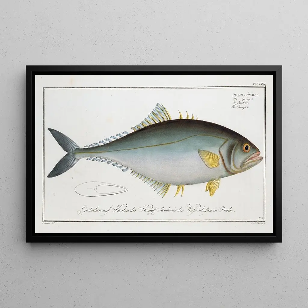 Marcus Elieser Bloch, deutscher Naturforscher und illustrator des 18. Jahrhunderts, ist bekannt für seine Arbeiten über Fische. Sein monumentales Werk "Ichthyologie" revolutionierte die Darstellung und Klassifizierung mariner Arten. Beeinflusst von den wissenschaftlichen Expeditionen seiner Zeit, vereinte Bloch wissenschaftliche Präzision mit künstlerischem Gespür und wurde so zu einer bedeutenden Figur im Bereich der Ichthyologie. Seine Leidenschaft für das Meer und seine Bewohner spiegelt sich in jeder Illustration wider, einschließlich dieser kunstdruck, die sein Engagement zeigt, der Biodiversität im Wasser Tribut zu zollen.