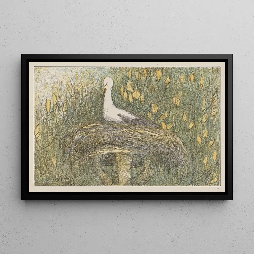 Cigogne dans le nid : ein Blick auf die friedliche Natur In "Cigogne dans le nid" bietet Theo van Hoytema eine Szene voller Gelassenheit und Sanftheit. Das Gemälde zeigt eine majestätische storke, die in ihrem Nest sitzt, umgeben von üppiger Vegetation. Die sanften Farben, die von beruhigenden Grüntönen bis zu warmen Brauntönen reichen, schaffen eine ruhige, fast kontemplative Atmosphäre. Die Technik des Künstlers, die Aquarell und Öl verbindet, erweckt jedes Detail zum Leben, von den zarten Federn des Vogels bis zu den lebendigen Blättern der Bäume. Dieses Werk lädt zu einer Pause ein, zu einer Reflexion über die einfache Schönheit der Natur. Theo van Hoytema: ein Meister des modernen Naturalismus Theo van Hoytema, niederländischer Maler des frühen 20. Jahrhunderts, ist bekannt für seinen einzigartigen Ansatz des Naturalismus. Beeinflusst von den künstlerischen Bewegungen seiner Zeit, konnte er die Schönheit der natürlichen Welt mit einer seltenen Sensibilität einfangen. Seine Karriere, geprägt von Reisen durch Europa, ermöglichte es ihm, verschiedene Stile zu erkunden, während er seiner Liebe zur Natur treu blieb. "Cigogne dans le nid" ist in eine Phase eingebettet, in der sich die Kunst mehr auf introspektive Themen konzentrierte, was eine Suche nach Verbindung mit der Umwelt widerspiegelt. Hoytema hat so ein nachhaltiges Erbe hinterlassen, das die Tier- und Pflanzenwelt durch seine Werke feiert. Eine dekorative Anschaffung mit vielfältigen Vorzügen Der kunstdruck "Cigogne dans le nid" ist ein dekoratives Stück, das sich harmonisch in verschiedene Räume einfügt, sei es ein Wohnzimmer, ein Büro oder ein Schlafzimmer. Die Druckqualität garantiert eine bemerkenswerte Treue zu den Farben und Details des Originalwerks, was eine ästhetisch ansprechende Wirkung entfaltet. Mit diesem Bild bringen Sie einen Hauch von Natur und Ruhe in Ihr Zuhause und bereichern gleichzeitig Ihre Dekoration. Dieses Bild ist nicht nur ein dekoratives Element, sondern auch eine tägliche Inspirationsquelle, die die Schönheit der natürlichen Welt um uns herum erinnert.