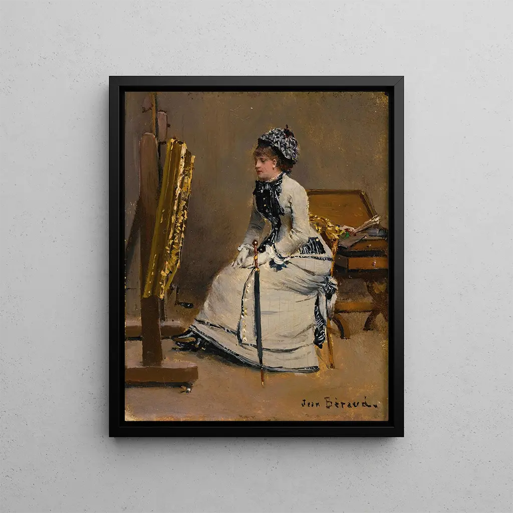 Frau sitzt vor einem Gemälde - Jean Béraud