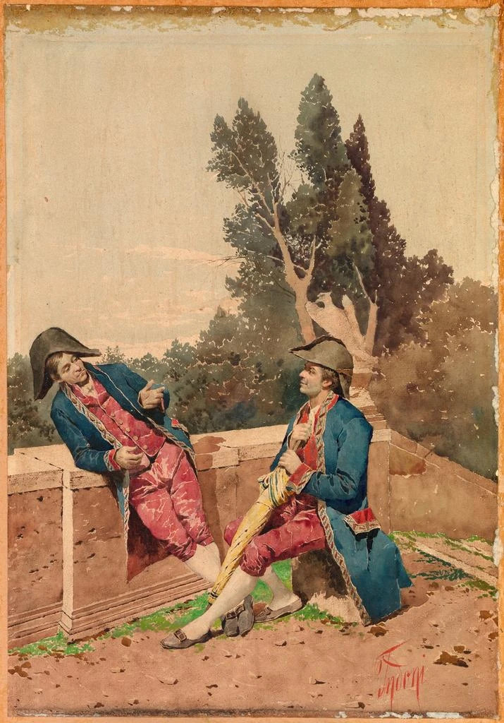 Filippo Indoni, Maler des 19. Jahrhunderts, wird oft mit der Darstellung militärischer Konflikte und der Helden seiner Zeit in Verbindung gebracht. Sein Stil, beeinflusst vom Romantizismus, zeichnet sich durch eine sorgfältige Detailarbeit und eine lebendige Farbpalette aus. Indoni hat sich als visueller Chronist seiner Epoche etabliert, der die Kämpfe und Triumphe der Soldaten illustriert. Seine Werke, darunter "Soldaten des Imperiums", zeugen von einer Zeit, die von politischen und militärischen Umbrüchen geprägt ist, und feiern gleichzeitig den Opfergeist und den Heldenmut der Uniformierten.