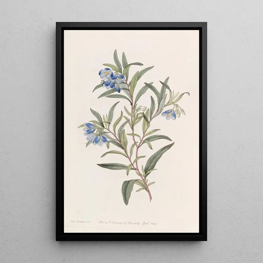 Sollya mit schmalen Blättern: eine Ode an die üppige Natur Die Reproduktion Sollya mit schmalen Blättern von Sydenham Edwards entführt uns in eine faszinierende botanische Welt. Dieses Gemälde, reich an Details, hebt leuchtende Grüntöne hervor, die die Frische des Laubs widerspiegeln. Die zarte Aquarelltechnik ermöglicht es, die Leichtigkeit der Blätter einzufangen, während die subtilen Schatten Tiefe in die Komposition bringen. Die Atmosphäre, die von diesem Werk ausgeht, ist sowohl beruhigend als auch belebend und lädt den Betrachter ein, die Schönheit der Flora zu erkunden. Jedes Element scheint im Licht zu tanzen und schafft eine visuelle Harmonie, die das Auge verzaubert. Sydenham Edwards: ein Pionier der botanischen Illustration Sydenham Edwards, aktiv im frühen 19. Jahrhundert, gilt als einer der ersten botanischen Illustratoren seiner Zeit. Ausgebildet an der Royal Academy, verstand er es, wissenschaftliche Präzision mit künstlerischer Sensibilität in seinen Werken zu verbinden. Beeinflusst von den botanischen Entdeckungen seiner Zeit, trug Edwards dazu bei, exotische Pflanzen durch seine Illustrationen zu popularisieren. Seine Arbeit bereicherte nicht nur botanische Werke, sondern hinterließ auch ein nachhaltiges Erbe in der Kunstwelt. Die Reproduktion Sollya mit schmalen Blättern zeugt von seinem Talent und seiner Hingabe an die treue Darstellung der Natur. Eine dekorative Anschaffung mit vielfältigen Vorzügen Die Reproduktion des Gemäldes Sollya mit schmalen Blättern ist eine ideale Wahl, um Ihr Interieur zu verschönern, sei es im Wohnzimmer, Büro oder Schlafzimmer. Seine beruhigende Farbpalette und sein elegantes Design verleihen jedem Raum eine Note von Eleganz. Die Druckqualität garantiert eine bemerkenswerte Treue zum Originalwerk, sodass Sie jedes Detail genießen können. Durch die Integration dieses Leinwandbildes in Ihre Dekoration bringen Sie eine Note von Gelassenheit und Natur in Ihr Zuhause und machen gleichzeitig eine kleine Hommage an die botanische Kunst. Dieses Gemälde ist viel mehr als nur eine Dekoration – es ist eine Einladung zur Kontemplation und Flucht.