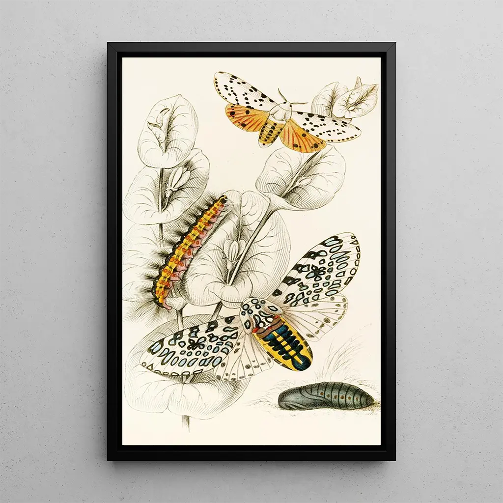 Die kunstdrucke von Spilosoma aerea Arctia oculatissima entführen uns in ein lebendiges Universum, in dem die Natur mit Kraft zum Ausdruck kommt. Dieses Gemälde, reich an Farben, hebt Nuancen von Gelb und Schwarz hervor, die die faszinierende Schönheit dieses Schmetterlings widerspiegeln. Die Technik des Künstlers, die Präzision und Zartheit verbindet, schafft eine Atmosphäre, die sowohl lebendig als auch kontemplativ ist. Die minutösen Details der Flügel, fast durchsichtig, fangen das Licht auf eine Weise ein, die das Werk zu vibrieren scheinen lässt. Jeder Pinselstrich erzählt eine Geschichte, die einer flüchtigen Kreatur, einem Symbol der Metamorphose und der vergänglichen Schönheit der Natur.