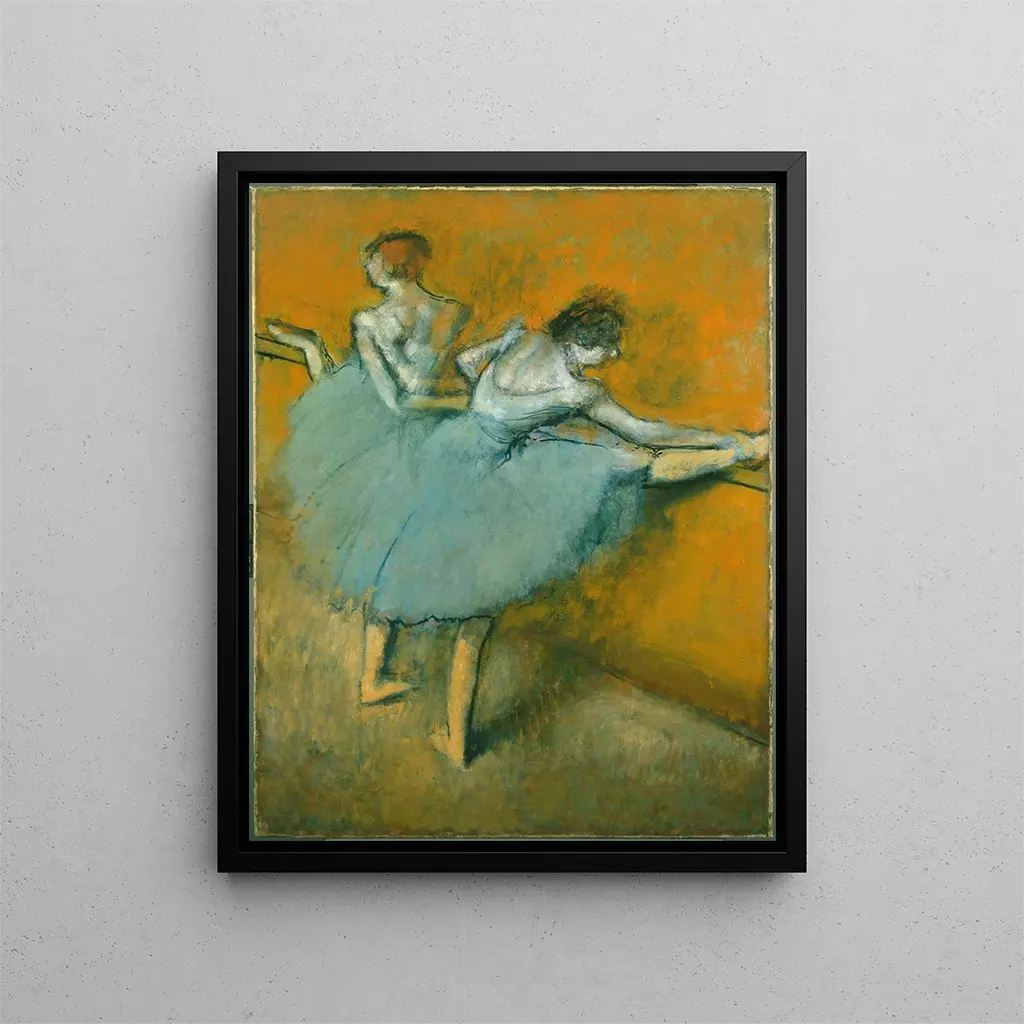 Reproduktion Tänzer an der Stange - Edgar Degas – Faszinierende Einführung In der faszinierenden Welt der Kunst übersteigen manche Werke die Zeit und den Raum und laden den Betrachter zu einem immersiven Erlebnis ein. "Tänzer an der Stange - Edgar Degas" ist ein leuchtendes Beispiel dafür. Dieses ikonische Stück fängt nicht nur die Anmut und Disziplin der Tänzer ein, sondern auch das Wesen von Bewegung und Licht selbst. Beim Eintauchen in dieses Werk entdeckt man eine Welt, in der Kunst und Tanz aufeinandertreffen und die Feinheiten eines eingefrorenen Moments offenbaren, das mit einer spürbaren Emotion widerhallt. Stil und Einzigartigkeit des Werks Die Einzigartigkeit von "Tänzer an der Stange" liegt darin, wie Degas es schafft, Bewegung mit bemerkenswerter Flüssigkeit darzustellen. Der Künstler, Meister des Impressionismus, verwendet zarte Pinselstriche, um die Leichtigkeit der in Bewegung befindlichen Körper zu beschreiben. Die Tänzer, die in ihrem Trainingsalltag festgehalten sind, werden mit großer Aufmerksamkeit für anatomische Details dargestellt, wobei eine gewisse Abstraktion erhalten bleibt, die Raum für die Fantasie lässt. Die Komposition ist dynamisch, mit variierenden Posen, die die Vielfalt der Bewegungen im Tanz widerspiegeln. Die subtil gewählte Farbpalette schafft eine intime Atmosphäre, durchdrungen von einem weichen Licht, das scheinbar von den Figuren selbst ausgeht. Dieses Gemälde geht über eine einfache Darstellung hinaus; es wird zu einer Feier der Schönheit des Körpers in Aktion, einer Ode an die Anstrengung und Leidenschaft der Künstler. Der Künstler und sein Einfluss Edgar Degas, ikonische Figur des Impressionismus, verstand es, die akademische Tradition mit den Innovationen seiner Zeit zu verbinden. Geboren 1834 in Paris, wurde er tief vom künstlerischen Umfeld seiner Epoche beeinflusst, während er einen persönlichen Stil pflegte, der ihn von anderen Meistern unterscheidet. Seine Faszination für den Tanz, insbesondere das Ballett, führte zu einer Reihe von Werken, die die Themen Performance und das tägliche Leben der Tänzer erforschen. Degas beschränkt sich nicht nur auf die äußere Schönheit; er dringt in die Intimität seiner Motive ein und offenbart ihre Kämpfe und Bestrebungen. Sein einzigartiger Ansatz hat zahlreiche Künstler inspiriert, und sein Erbe lebt in der Welt der zeitgenössischen Kunst weiter, wo der Tanz weiterhin eine unerschöpfliche Quelle der Inspiration ist.