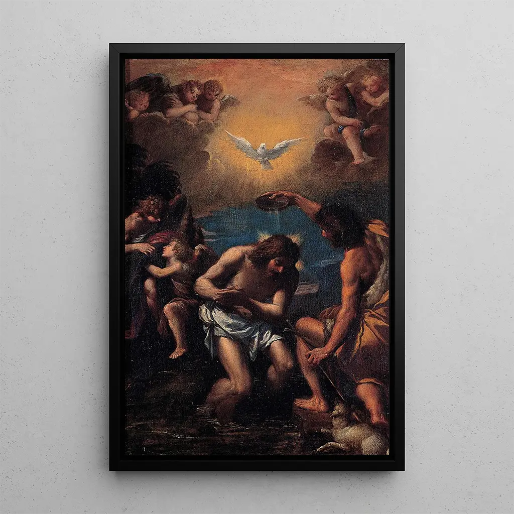 Baptême du Christ : eine heilige Szene voller Gelassenheit Der Kunstdruck "Baptême du Christ" von Scarsellino vermittelt eine Atmosphäre von Frieden und Spiritualität. Die sanften Farben, dominiert von Blau- und Grüntönen, schaffen eine visuelle Harmonie, die zur Kontemplation einlädt. Das göttliche Licht scheint sich auf die zentrale Figur des Christus zu konzentrieren, während die umgebenden Figuren, obwohl sekundär, eine narrative Tiefe zur Szene hinzufügen. Die Technik von Scarsellino, die Realismus mit stilistischen Elementen der Renaissance verbindet, verleiht diesem Werk eine fast ätherische Qualität und fängt einen Moment spirituellen Übergangs ein. Scarsellino : ein Meister der italienischen Renaissance Scarsellino, mit bürgerlichem Namen Giovanni Battista Scarsella, ist ein Maler der italienischen Renaissance, der hauptsächlich in Bologna tätig war. Beeinflusst von den großen Meistern seiner Zeit, entwickelte er einen einzigartigen Stil, der die Feinheit des Details mit einer eindrucksvollen Ausdruckskraft verbindet. Seine Werke zeichnen sich oft durch eine Suche nach Licht und Schatten aus, was ihm ermöglicht, seine Motive lebendig werden zu lassen. Der Kunstdruck "Baptême du Christ" ist emblematisch für seinen Ansatz und zeigt sowohl sein technisches Talent als auch seine Fähigkeit, tiefe Emotionen zu vermitteln. Dieses Werk ist Teil einer reichen künstlerischen Tradition, in der Spiritualität und Menschlichkeit aufeinandertreffen. Eine dekorative Anschaffung mit vielfältigen Vorzügen Der Kunstdruck des "Baptême du Christ" ist ein dekoratives Stück, das jeden Raum bereichern kann, sei es ein Wohnzimmer, ein Büro oder ein Schlafzimmer. Die Qualität der Reproduktion garantiert eine Treue zu den Originaldetails, sodass man das Werk in seiner ganzen Pracht genießen kann. Die ästhetische Anziehungskraft dieses Leinwandbildes liegt nicht nur in seiner visuellen Schönheit, sondern auch in der spirituellen Botschaft, die es vermittelt. Dieses Bild bei sich zuhause aufzuhängen, bedeutet, einen Teil der Kunstgeschichte und der Gelassenheit in den eigenen Lebensraum einzuladen.