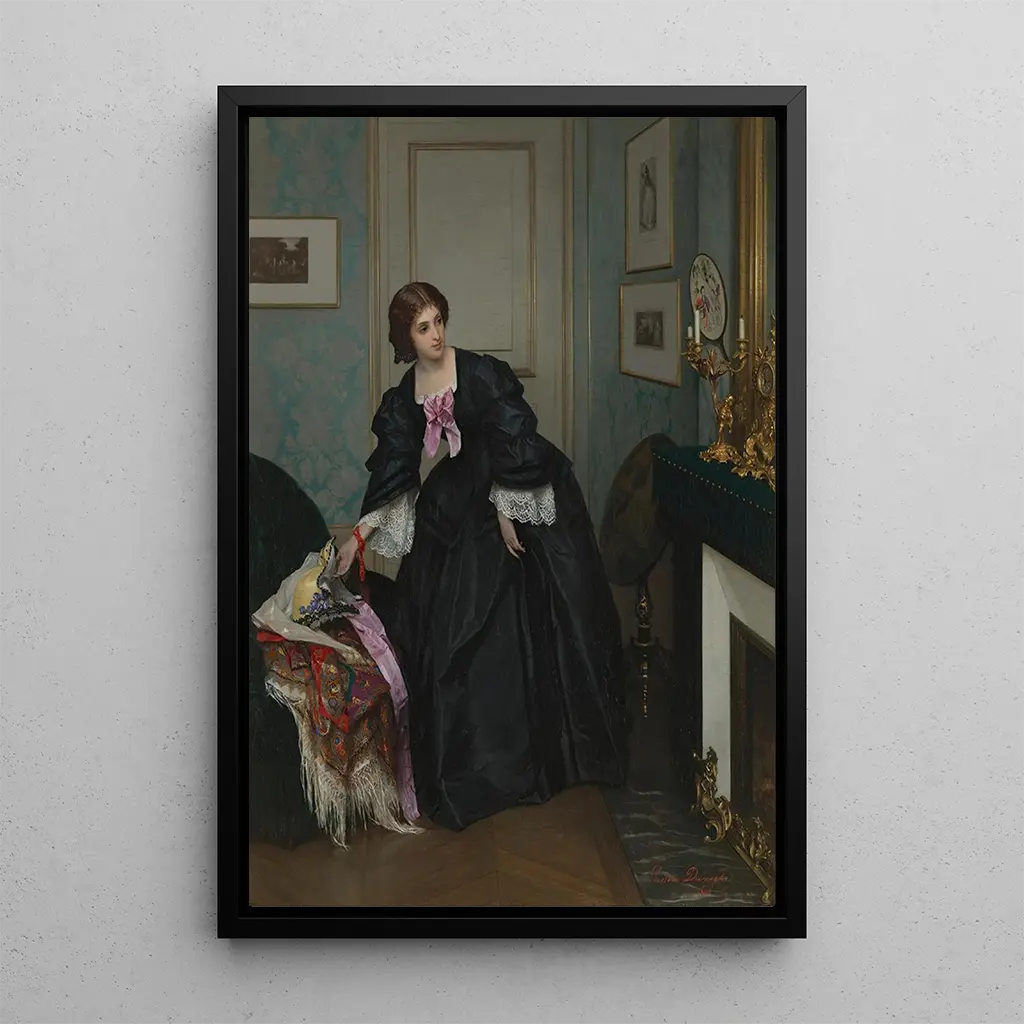 Betrachten Sie die Uhr: eine zarte Melancholie In dieser kunstdruckversion von Betrachten Sie die Uhr evoziert Gustave Léonard de Jonghe eine Atmosphäre voller Sanftheit und Melancholie. Die Komposition hebt eine kontemplative Frau hervor, die in ihre Gedanken vertieft ist, während ein gedämpftes Licht die Szene durchflutet. Die Pastelltöne und die feinen Details schaffen eine intime, fast träumerische Stimmung. Die Technik von Jonghe, die Realismus und Sensibilität verbindet, ermöglicht es, die Emotionen zu spüren, die dieses Gemälde ausstrahlt, und lädt den Betrachter ein, einen Moment der Reflexion zu teilen. Gustave Léonard de Jonghe: ein Künstler des 19. Jahrhunderts Gustave Léonard de Jonghe, aktiv im 19. Jahrhundert, ist bekannt für seine Werke, die die Psychologie der Figuren erforschen. Beeinflusst vom Symbolismus, konzentriert er sich auf Themen wie Einsamkeit und Introspektion. Seine Gemälde, oft mit weiblichen Figuren bevölkert, zeugen von einer ästhetischen und emotionalen Suche. De Jonghe, obwohl weniger bekannt als andere Künstler seiner Zeit, hat es verstanden, Lebensmomente mit einer Tiefe einzufangen, die das zeitgenössische Publikum weiterhin berührt. Eine dekorative anschaffung mit vielfältigen vorteilen Dieser kunstdruck von Betrachten Sie die Uhr ist eine wertvolle Ergänzung Ihrer Innendekoration. Ob im Wohnzimmer, Schlafzimmer oder Büro, dieses Bild verleiht Eleganz und Gelassenheit. Seine Druckqualität garantiert eine perfekte Wiedergabe der Nuancen und Details des Originalwerks. Durch die Integration dieses Leinwandbildes in Ihren Raum schaffen Sie eine beruhigende Atmosphäre und bereichern Ihre Umgebung mit einem Kunstwerk voller Emotionen und Schönheit.