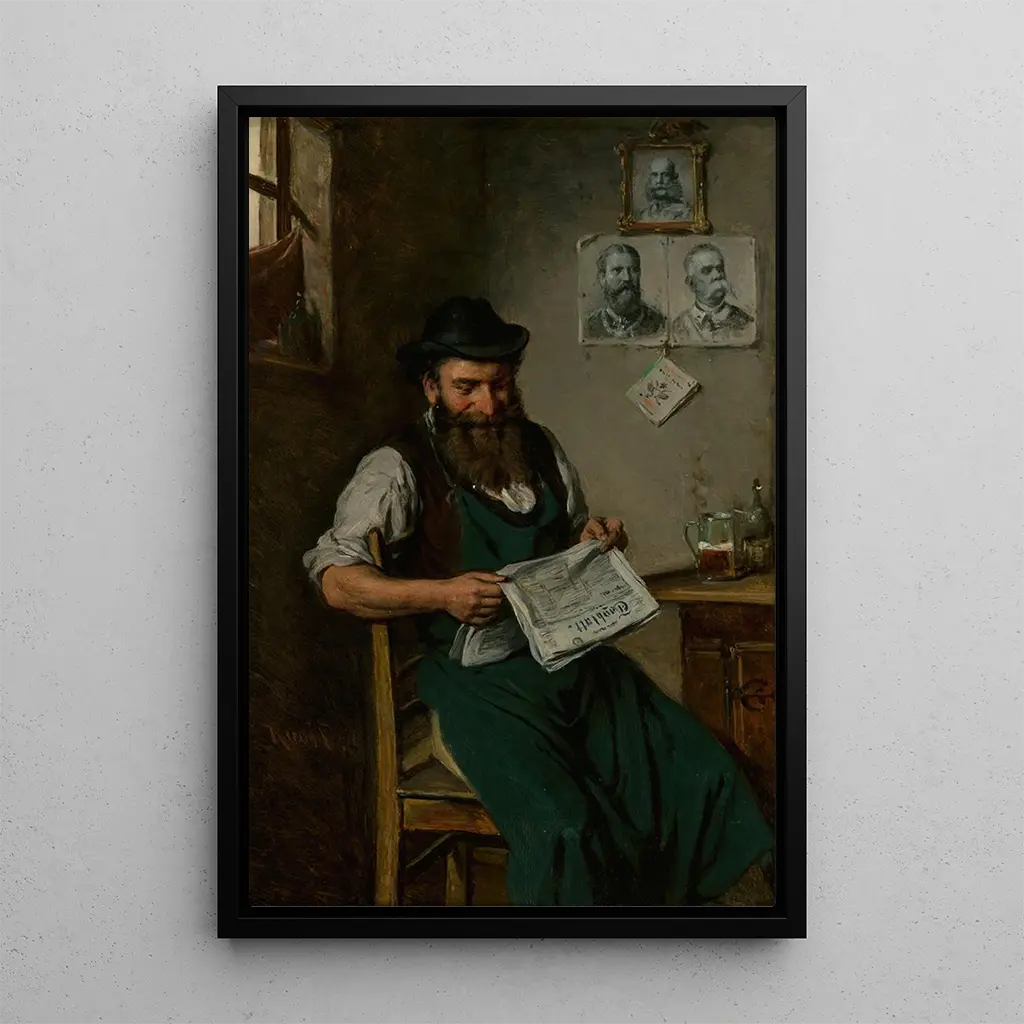 Ein Händler liest eine Zeitung: eine Alltagsszene, die fein eingefangen wurde In "Ein Händler liest eine Zeitung" porträtiert Hermann Kern eine intime Szene, in der der Protagonist, vertieft in seine Lektüre, scheinbar in der Zeit suspendiert ist. Die warmen, erdigen Farben dominieren die Komposition und schaffen eine einladende, vertraute Atmosphäre. Das sanfte Licht, das das Gesicht des Händlers beleuchtet, hebt die Details seines Ausdrucks hervor und offenbart eine emotionale Tiefe. Die Technik von Kern, die Realismus und impressionistische Akzente verbindet, lädt den Betrachter ein, über die Gedanken dieses Mannes nachzudenken, während sie gleichzeitig die Einfachheit der alltäglichen Momente feiert. Hermann Kern: ein Meister des Realismus im Herzen des modernen Lebens Hermann Kern, österreichischer Maler, der Anfang des 20. Jahrhunderts aktiv war, ist bekannt für seine Fähigkeit, das tägliche Leben mit bemerkenswerter Präzision einzufangen. Beeinflusst vom realistischen Bewegung, hat er die Nuancen des urbanen Lebens aufgenommen und gleichzeitig Elemente des Impressionismus integriert. Seine Werke, oft fokussiert auf gewöhnliche Figuren, spiegeln eine Übergangszeit wider, in der die Modernität beginnt, sich durchzusetzen. Kern hat einen Dialog zwischen Kunst und Gesellschaft etabliert, wodurch seine Gemälde Zeugen ihrer Zeit sind, während sie eine zeitlose Ästhetik bewahren. Eine dekorative kunstdruck-aufnahme mit vielfältigen vorzügen Der kunstdruck von "Ein Händler liest eine Zeitung" ist eine ideale dekorative Wahl für verschiedene Räume wie Wohnzimmer, Büro oder sogar Schlafzimmer. Seine Druckqualität garantiert eine Treue zu den Farben und Details des Originalwerks, sodass das Talent des Künstlers voll zur Geltung kommt. Dieses Bild, mit seiner warmen Atmosphäre, verleiht Ihrem Interieur einen Hauch von Eleganz und Geselligkeit. Durch die Integration dieses Leinwandbildes bieten Sie nicht nur ein Kunstwerk für Ihren Raum, sondern auch eine Einladung zur Reflexion über die einfachen Freuden des täglichen Lebens.