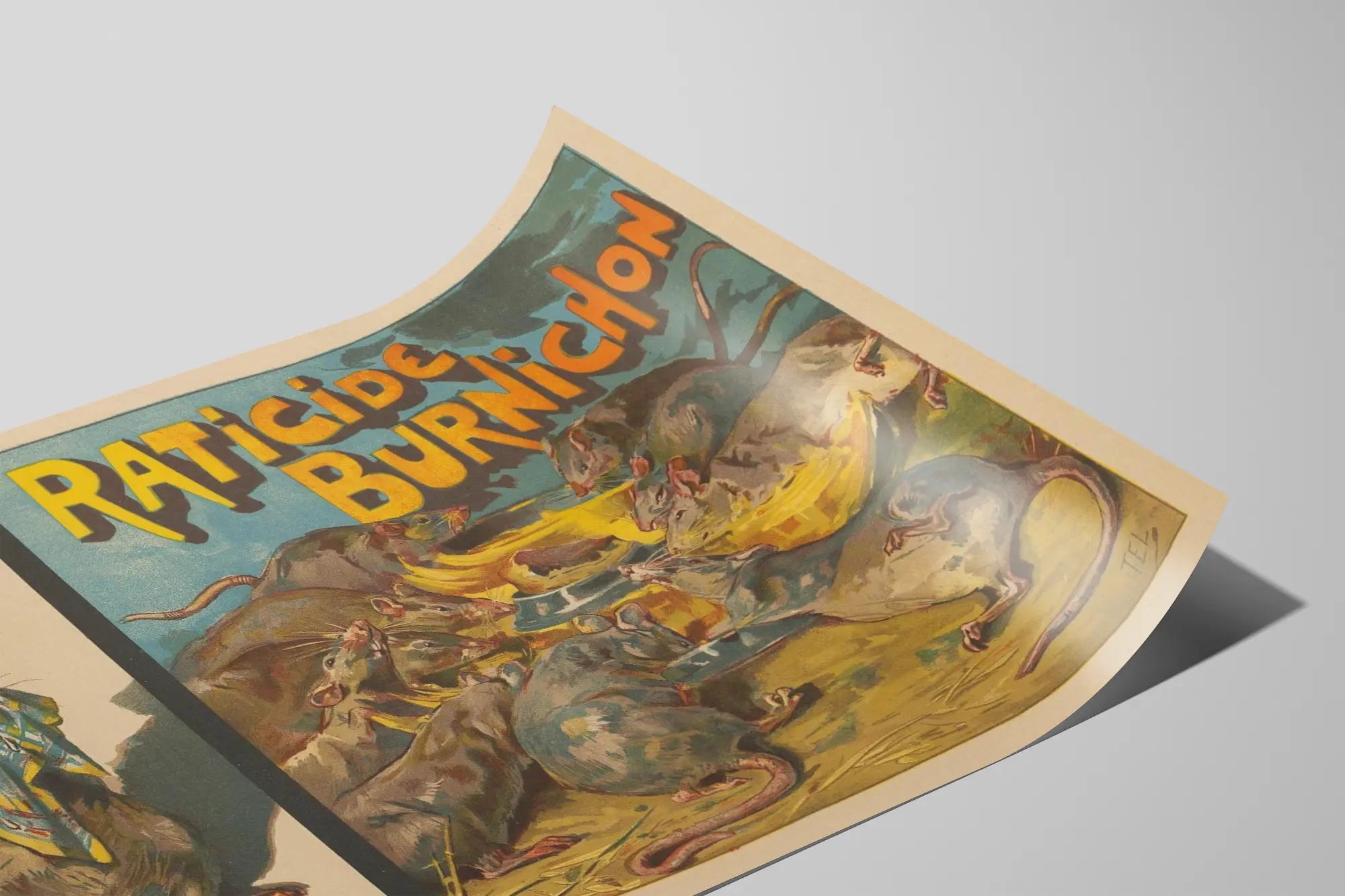 Vintage-Poster Raticide Burnichon – Retro-Wanddekoration