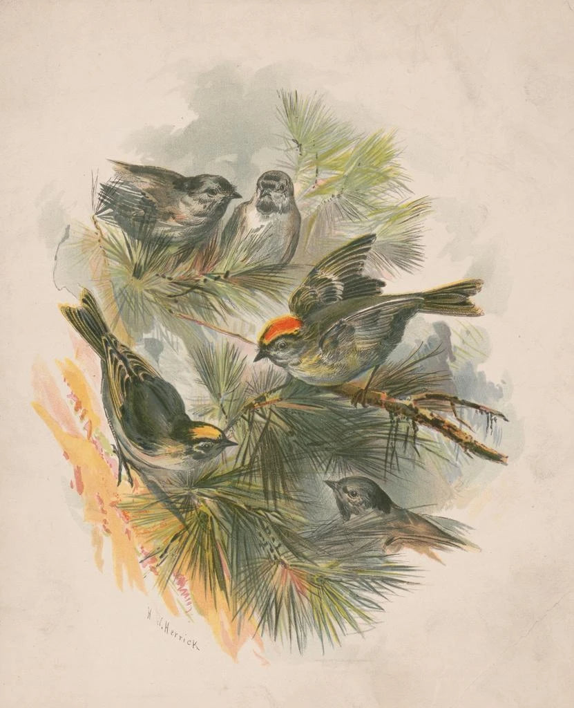 Vögel auf Kiefernzweigen - Henry Walker Herrick