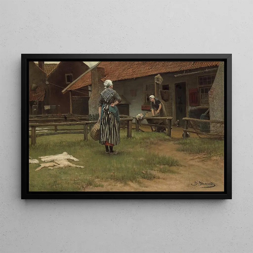 Bernardus Johannes Blommers, 1845 in den Niederlanden geboren, ist bekannt für seine Darstellungen des Landlebens und der Natur. Beeinflusst vom Impressionismus, konnte er Momente des Lebens mit besonderer Sensibilität einfangen. Blommers widmete seine Karriere der Darstellung des täglichen Lebens und hob die Schönheit einfacher Gesten und menschlicher Interaktionen hervor. Tageswäsche ist ein perfektes Beispiel seines Stils, bei dem es ihm gelingt, einen Moment des Lebens mit großer Zartheit zu verewigen und gleichzeitig der niederländischen Kultur Tribut zu zollen.