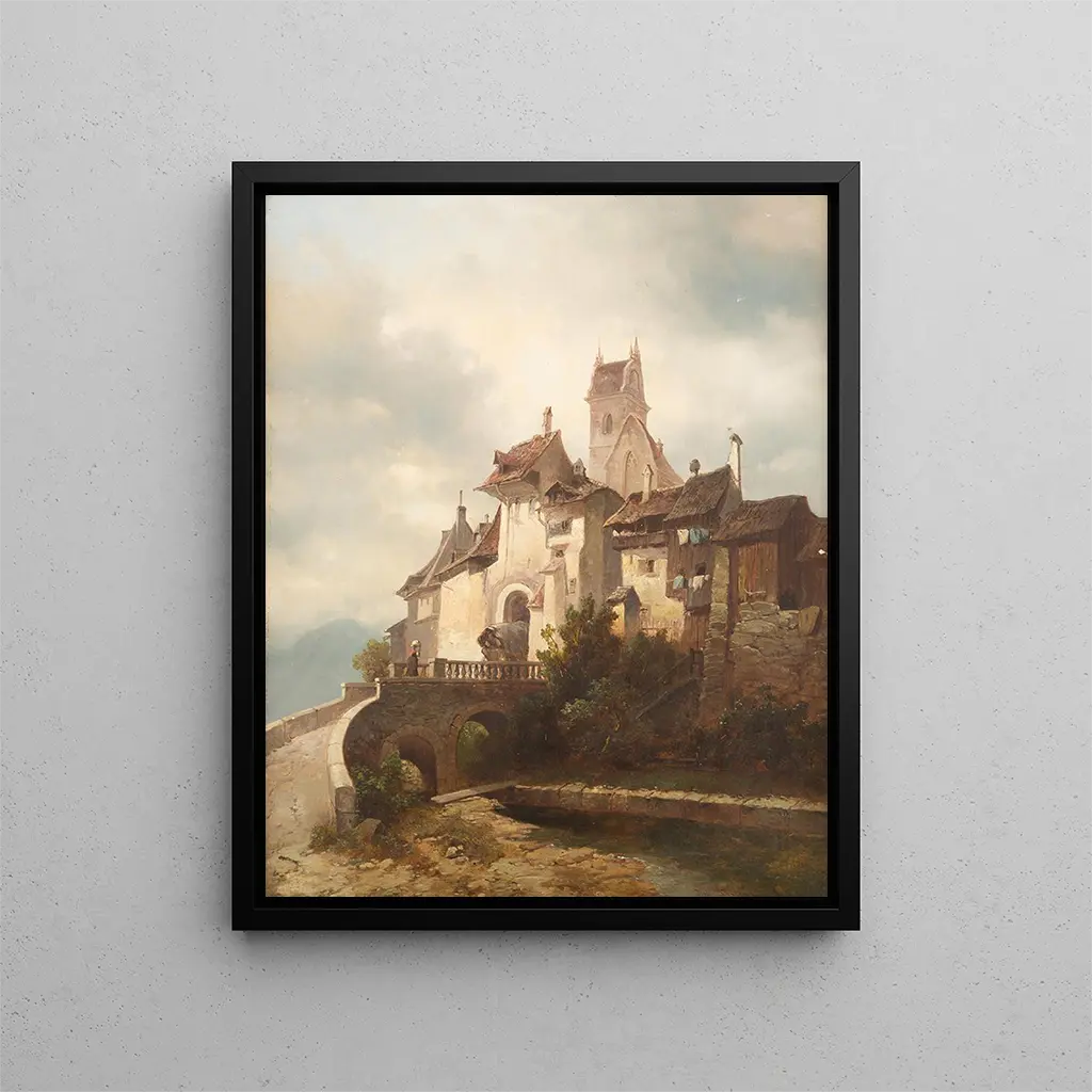 Das "Stadtbild" von Adolf Gustav Thamm ist ein Werk, das den Betrachter in eine bezaubernde Welt entführt, in der gotische Architektur und idyllische Landschaften harmonisch aufeinandertreffen. Dieses ikonische Stück lädt zu einer Reise in vergangene Zeiten ein, die Geheimnisse und die Größe früherer Städte hervorrufen. Durch diesen Kunstdruck gelingt es dem Künstler, die Essenz des mittelalterlichen Lebens einzufangen und einen Blick auf eine Epoche zu gewähren, in der jeder Stein eine Geschichte erzählte und jede Gasse von Legenden durchdrungen war. Dieses Gemälde wird somit zu einem visuellen Zeugnis, einer Einladung zum Träumen und zur Kontemplation.